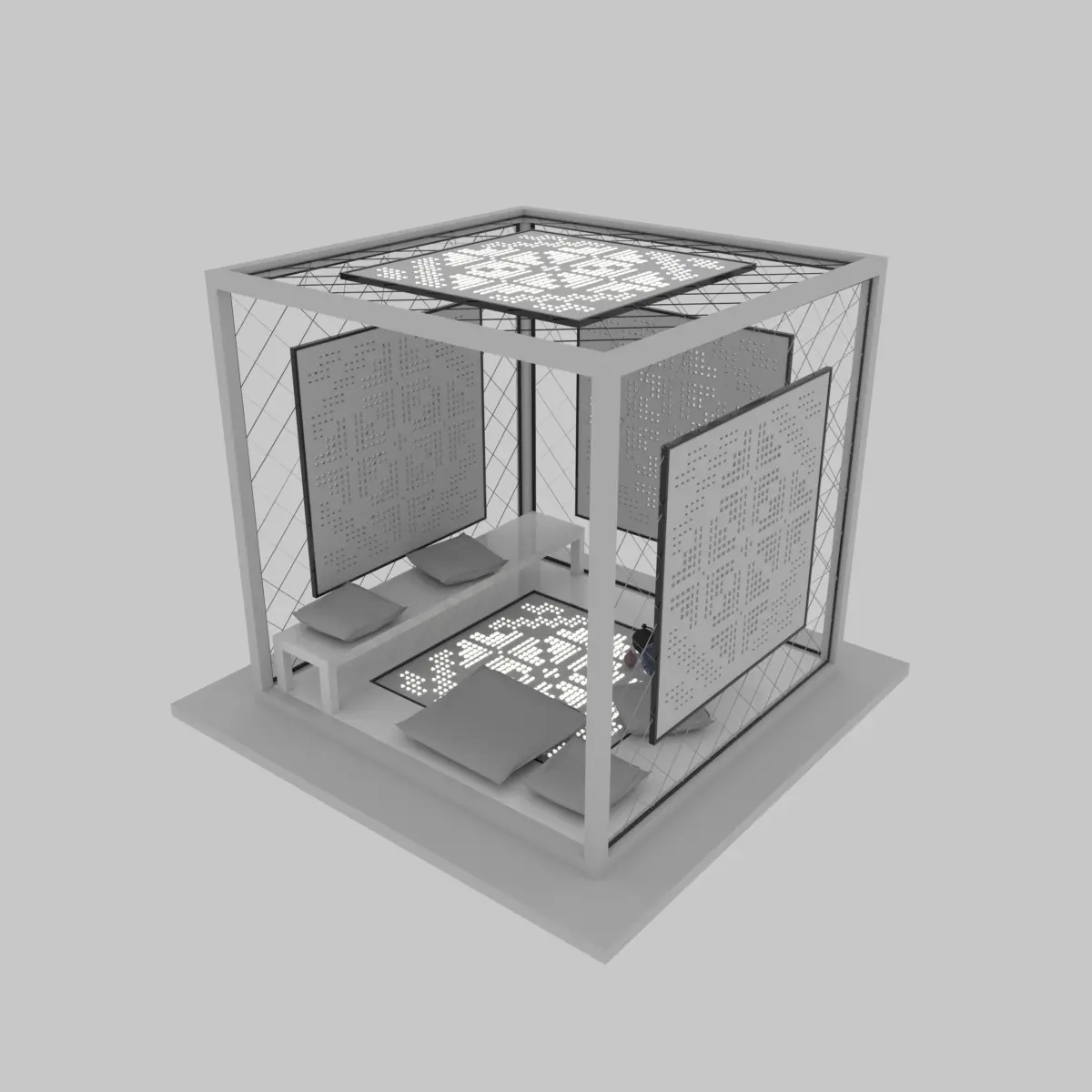 Ambience is inspirated by serbian embroidery. It has threads wich are part of one old kid of embroidery and small holes that are pattern of second kind.