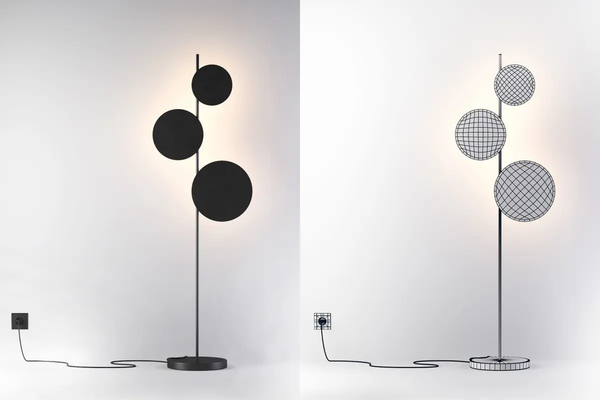 Floor lamp:Freestanding luminaire from the Ambiente line,with socket and connected cord.