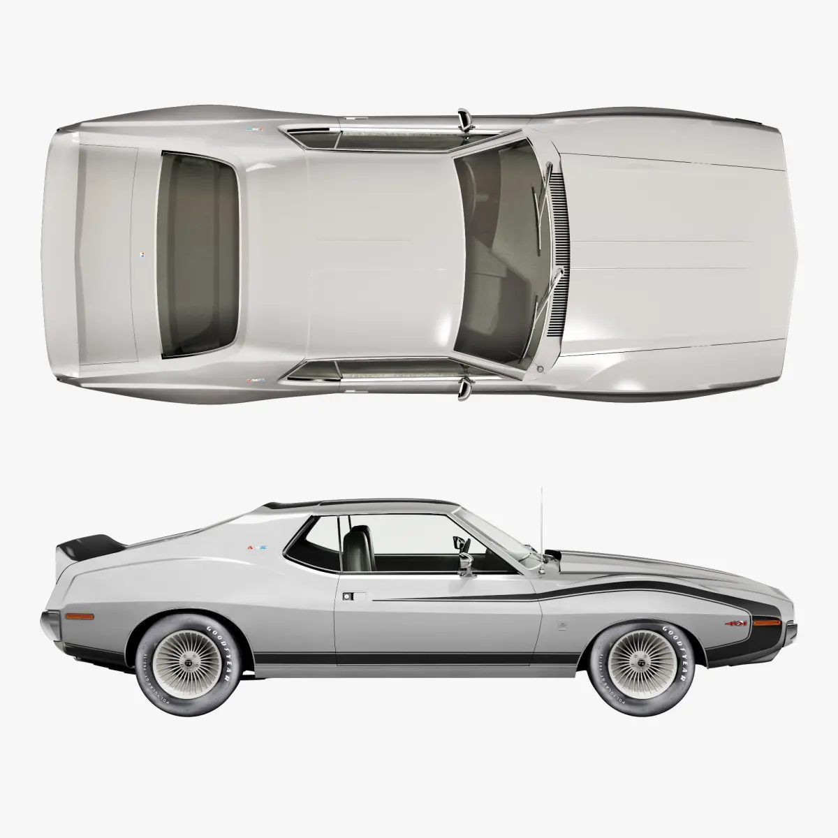 The AMC Javelin is an American front-engine, rear-wheel-drive, two-door hardtop automobile manufactured and marketed by American Motors Corporation (AMC) across two generations, 1968–1970 and 1971–1974 model years.Styled by Dick Teague, the Javelin was available in a range of trim and engine levels, from economical pony car to muscle car variants.As the winner of Trans-Am race series in 1971, 1972, and 1976, the second-generation AMX variant was the first pony car to be used as a standard vehicle for highway police car duties by an American law enforcement agency.