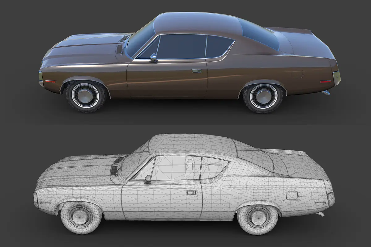 AMC Matador 1971 low-poly 3d model ready for Virtual Reality (VR), Augmented Reality (AR), games and other real-time apps.