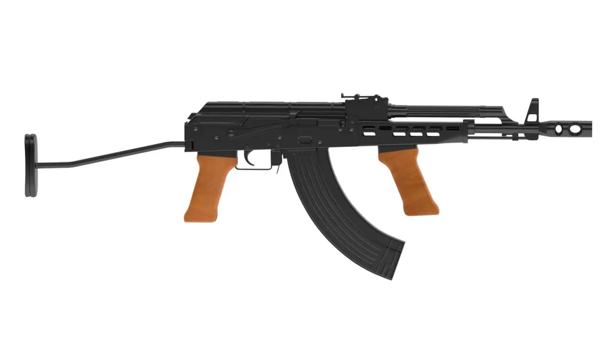AMD-65 is a Hungarian-manufactured licensed variant of the venerable selective fire AKM rifle for use by that nation's armored infantry and paratrooper ('descent') units within the Hungarian Defence Forces. The rifle's design is suited for outdoor use as an infantry rifle but can also be used from within the confines of an armored vehicle as a fire support weapon. This is possible due to the side-folding stock of shaft design that makes it more compact. The 12.6-inch barrel is also relatively short for the 7.62×39mm cartridge. The operating mechanism does not require a gas expansion chamber at the muzzle, as in the AKS-74U to ensure reliable functioning, but does use a specially designed muzzle brake. It reduces muzzle flash but makes the weapon louder.