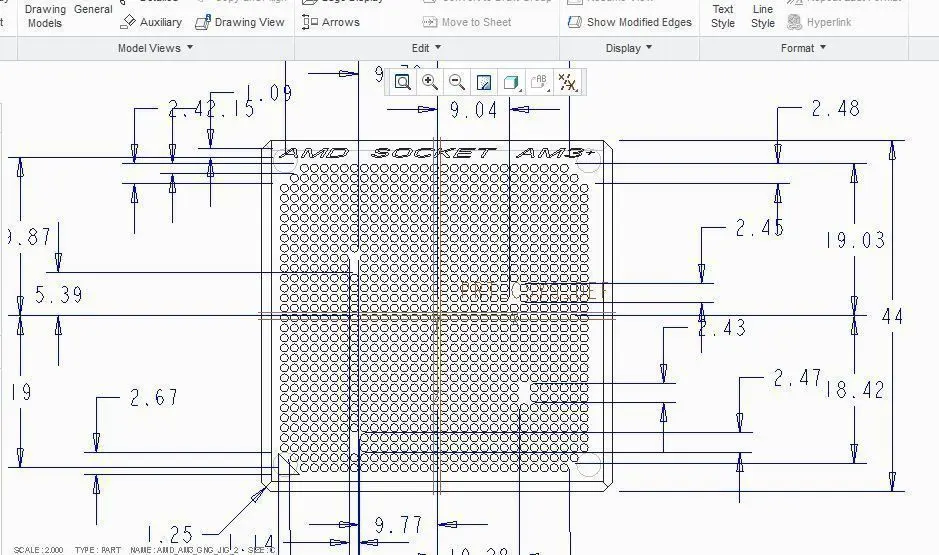Manufacturer Of Processor: AMD.Socket Type : Socket AM3 + .Socket Array: Pin Grid Array - Zero Insertion Force ( PGA - ZIF )Total no. of pin holes : 931 holes.Notch/Fiducial marking : Triangular Notch/Fiducial ( Bottom Left ).Material : Stainless Steel.Machining Finishing : Debur & Break Sharp Edges.Diameter of pin hole : 1.00 mm ( each ).Microprocessor size : 40 mm X 40 mm. ( length X width )Inspection Jig size : 44mm X 44 mm. ( length X width )
