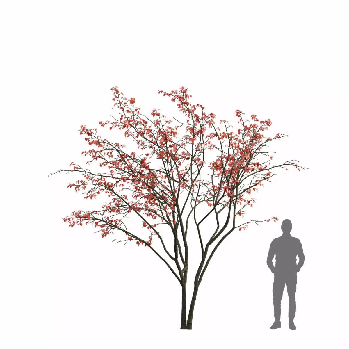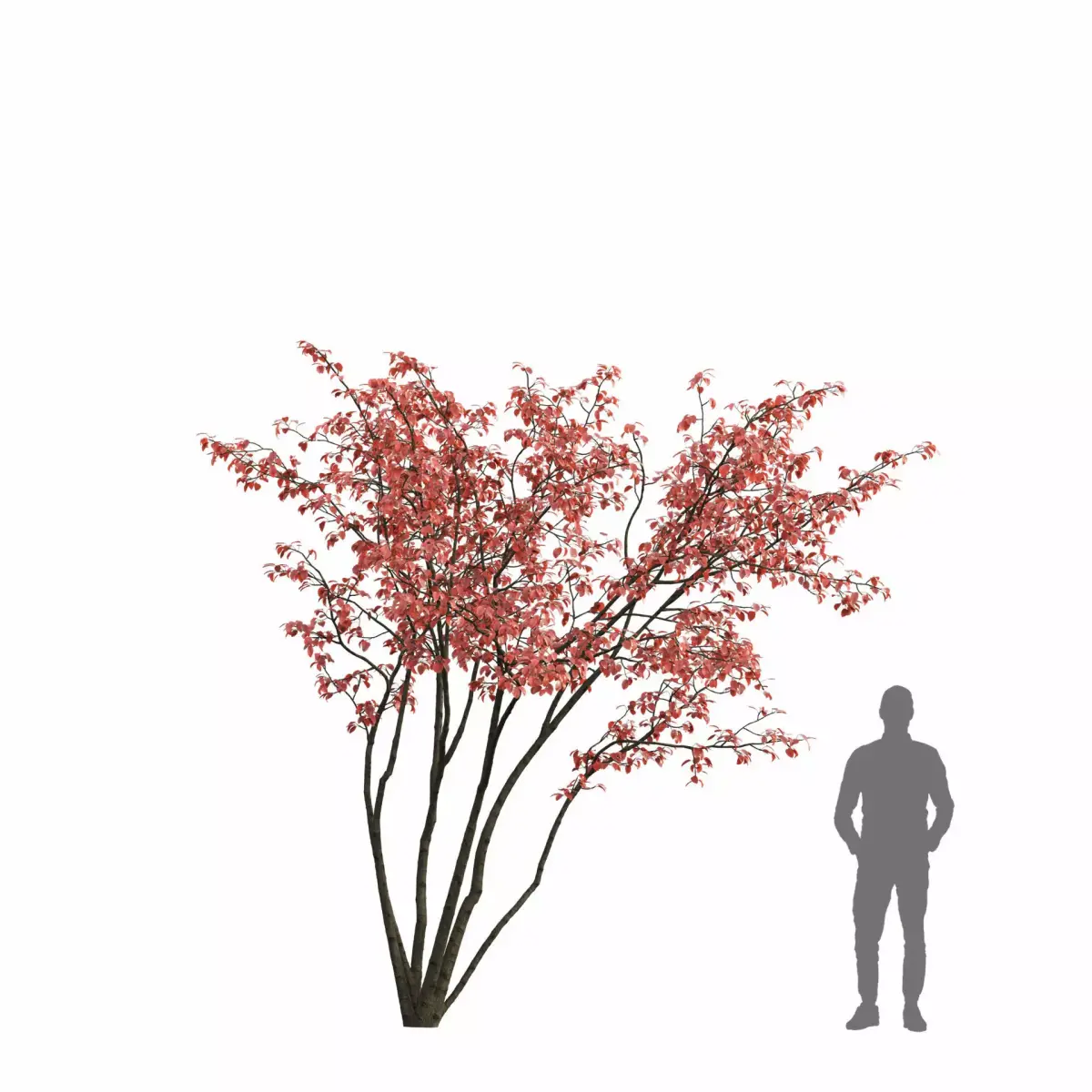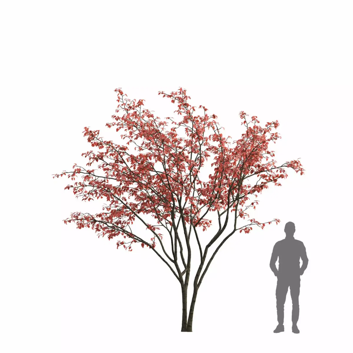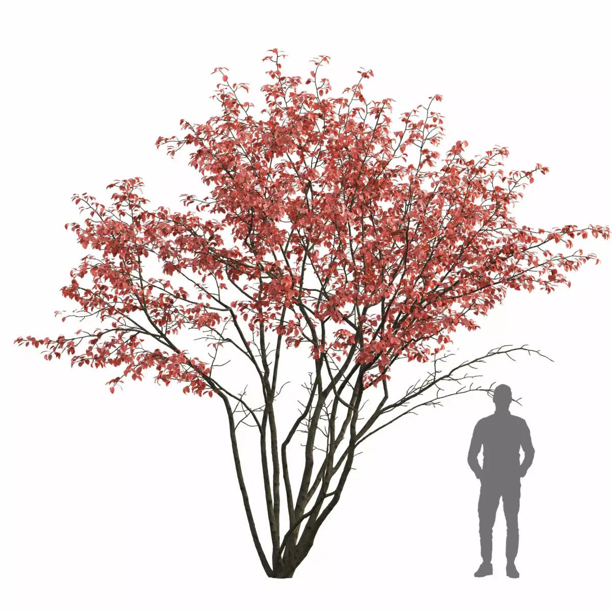 The scene features four serviceberry trees with autumn leaf coloring.Height: 4 to 5 m