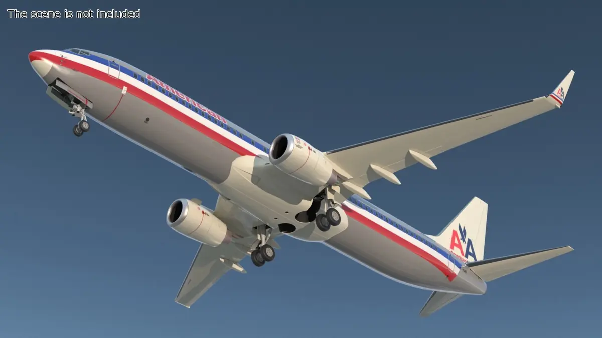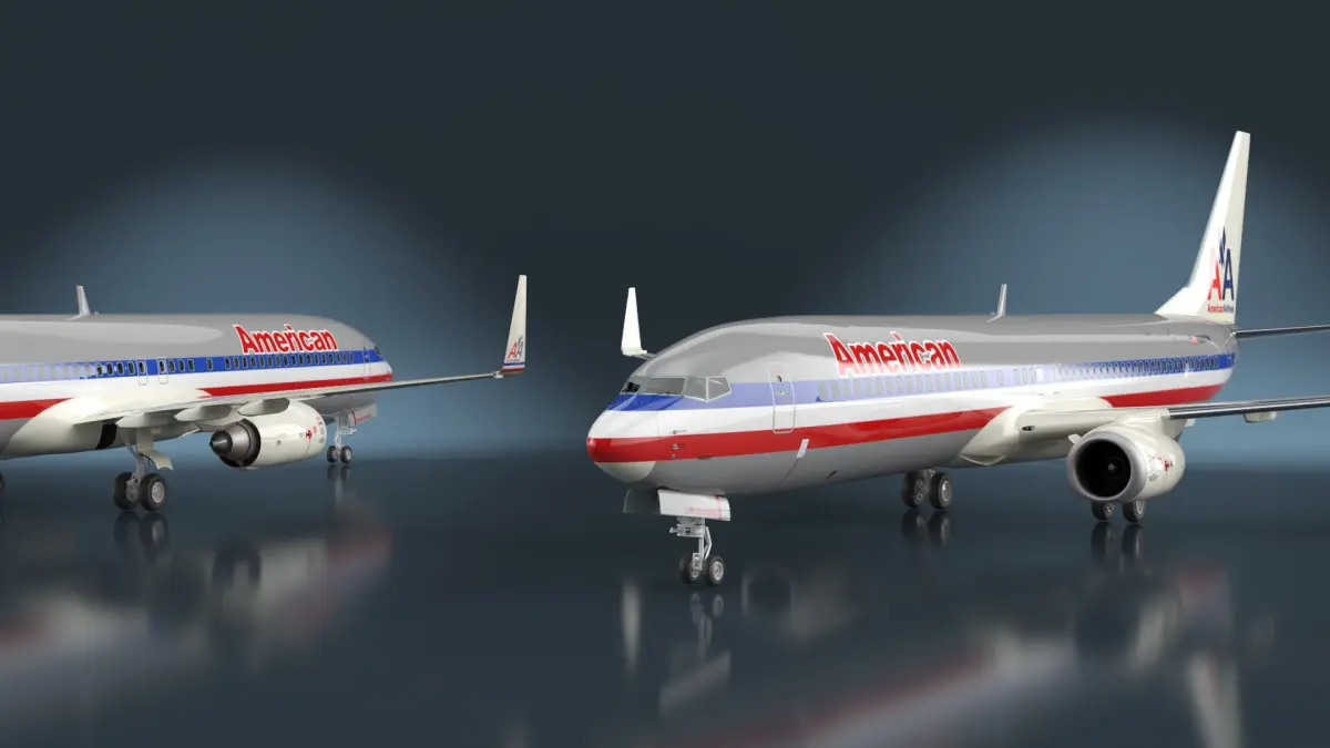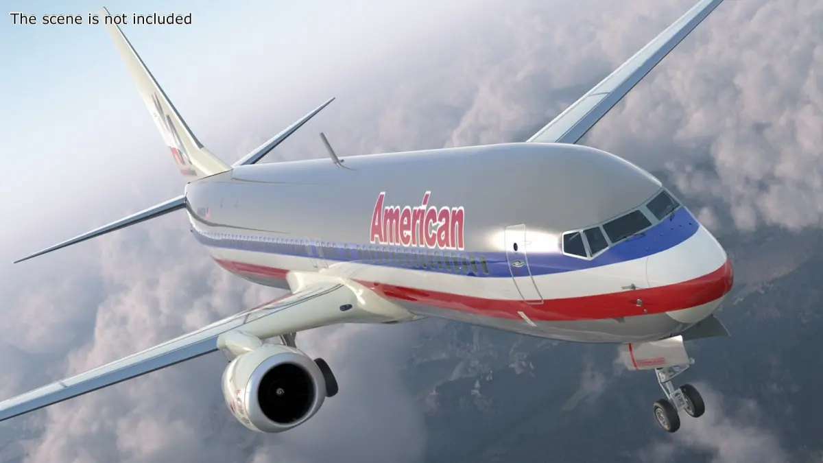 This detailed 3D model accurately represents the Boeing 737's sleek fuselage, distinct winglets, and twin-engine configuration. The model captures the aircraft's realistic textures, aerodynamic shape, and signature American Airlines livery, making it ideal for various visual applications.
