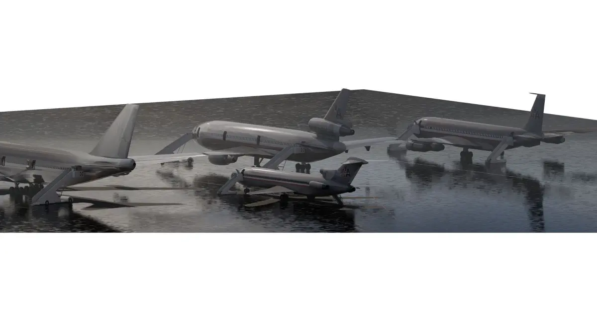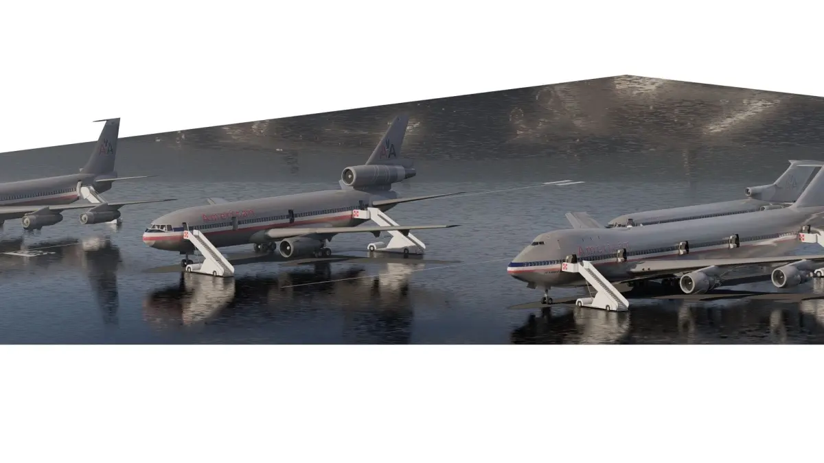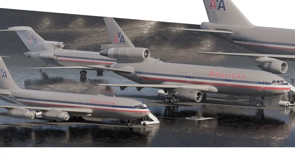 Description This is a model of American airlines Boeing 747-100 DC-10-10 727-200 707-123B . The 3d model is textured and iluminated for one scene. The model is ready to render with Lumion 12.5 or above.The package is built and designed for you to reuse, but above all, study and learn about the development of basic design stages with good 3D models and with materials, textures, camera settings, and light management that make a good balance of lighting possible.