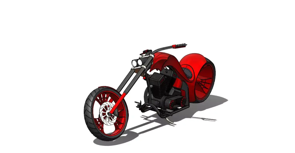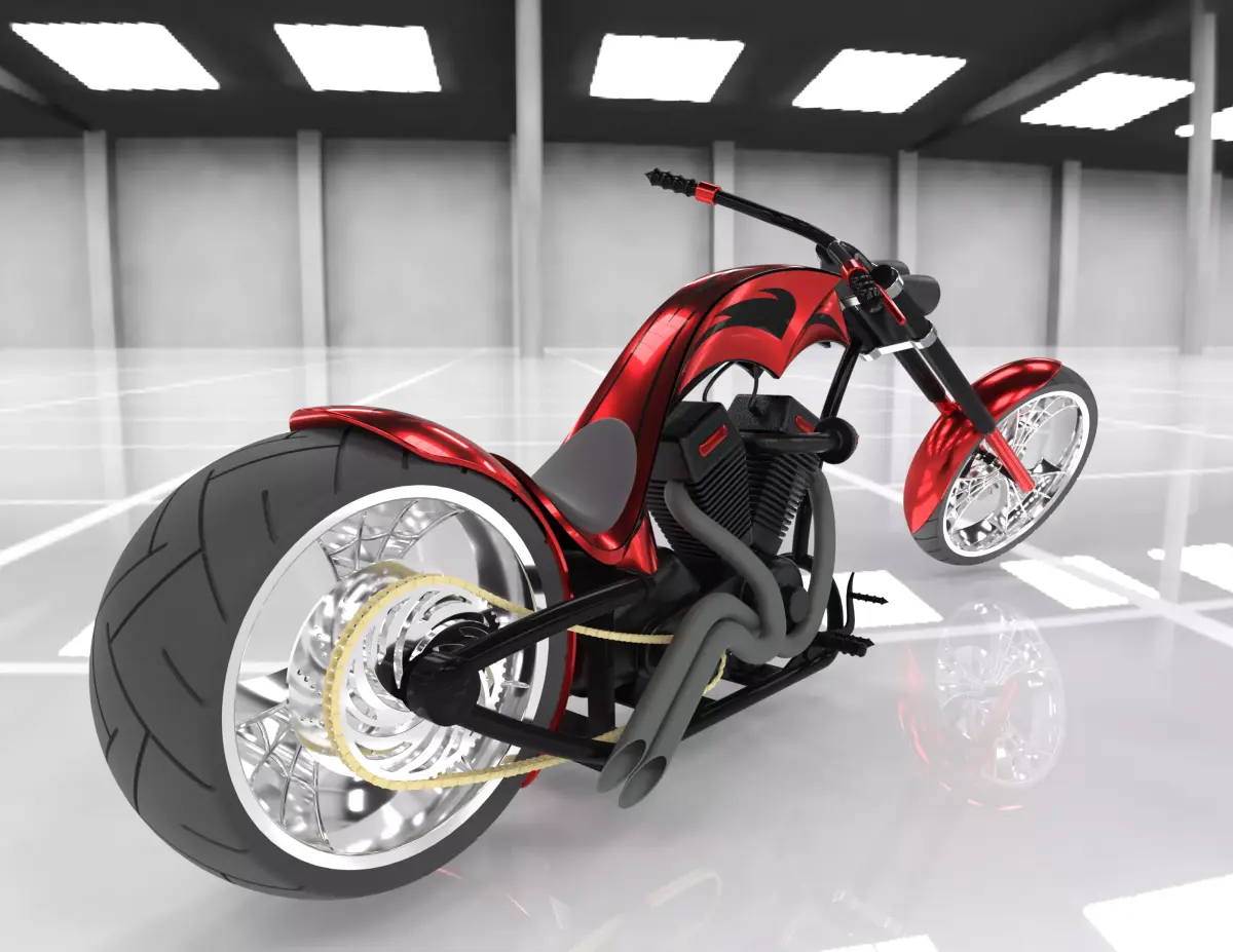 Presenting a high-quality, detailed 3D model of a custom American chopper. This model captures the iconic, aggressive stance of classic choppers, complete with extended front forks, a powerful V-twin engine, and a wide rear tire.