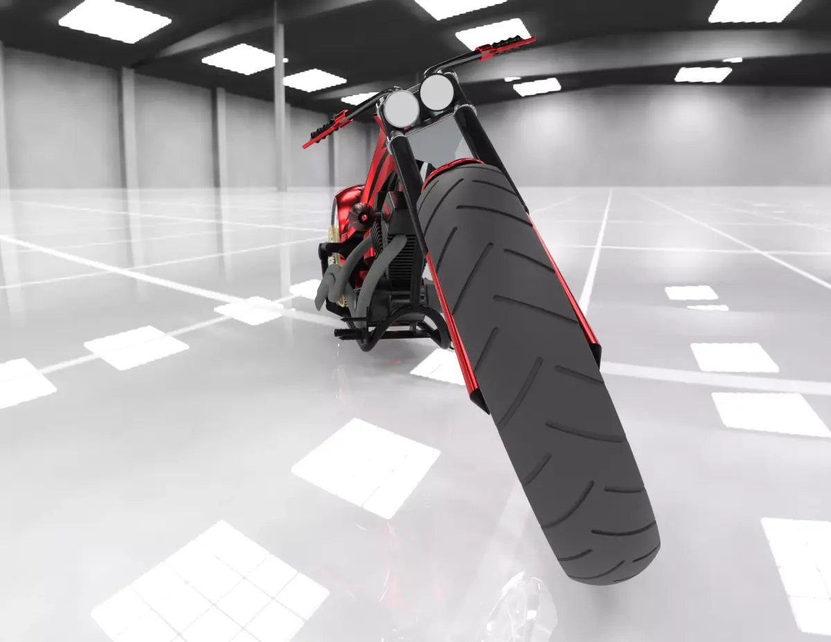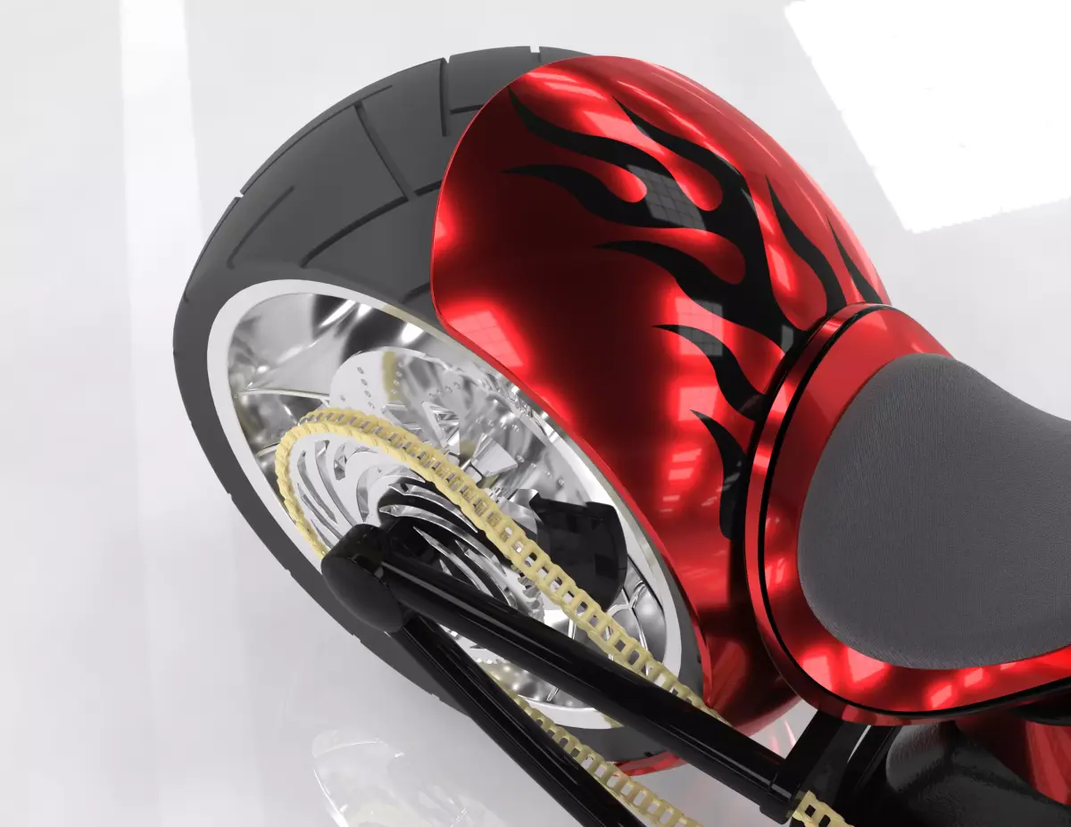 High Level of Detail: A complete, high-poly model including a detailed engine, frame, wheels, drive chain, and exhaust.