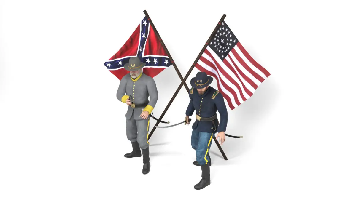 3D models of a Union officer and Confederate officer (American Civil War in the United States). Weapons and flags included. The model includes bones and several animations. Model ideal to be used in games, advertising and video production. Low-poly models to be used easily in any project.