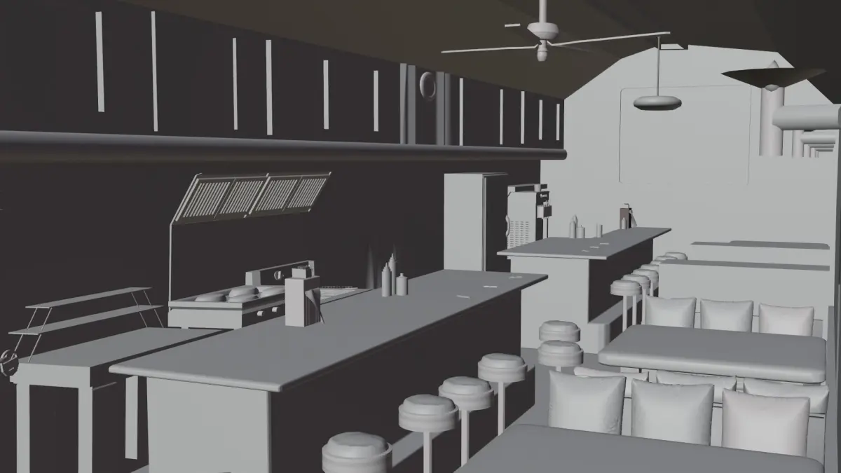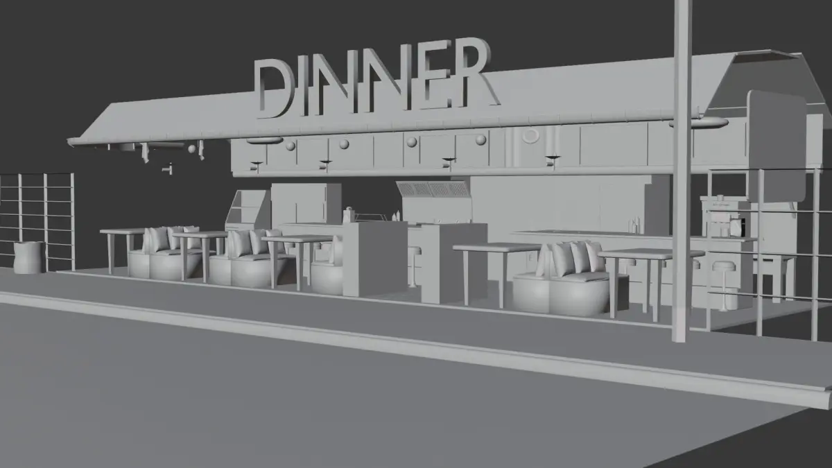 Scene was created in blender 2.92 - 2.93, first image in cycle.Without PBR, no uw,Typical diner from 90's American movies, the model does not include the environment, the man and the tree in the background)Hope you enjoy!