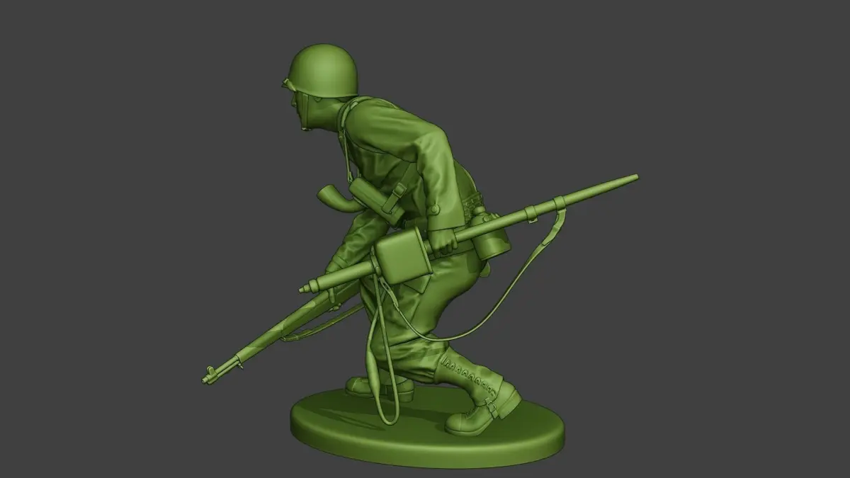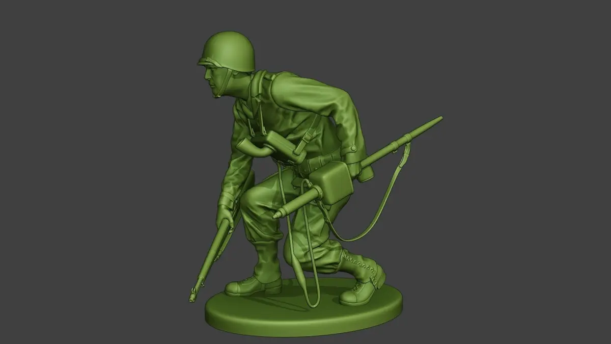 - American engineer soldier model with SCR-511 radio, clothes and more. Model walking crouched.