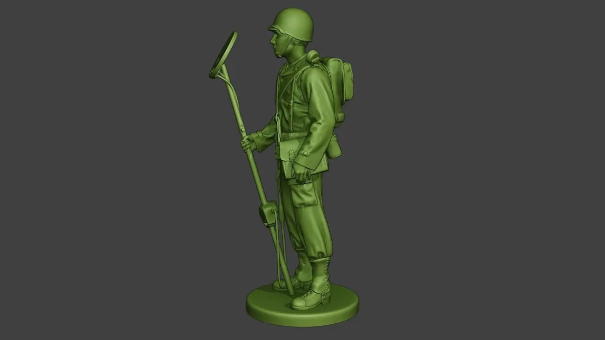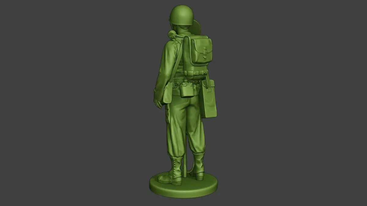 - American engineer soldier model with guns (M1 Garand) and engineering objects (3d print model).