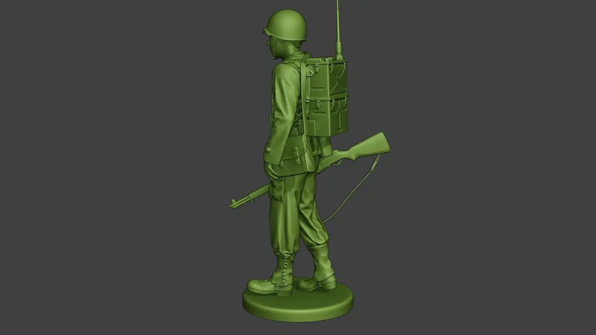 - American engineer soldier model with SCR-300, clothes and more. Model in walking action.