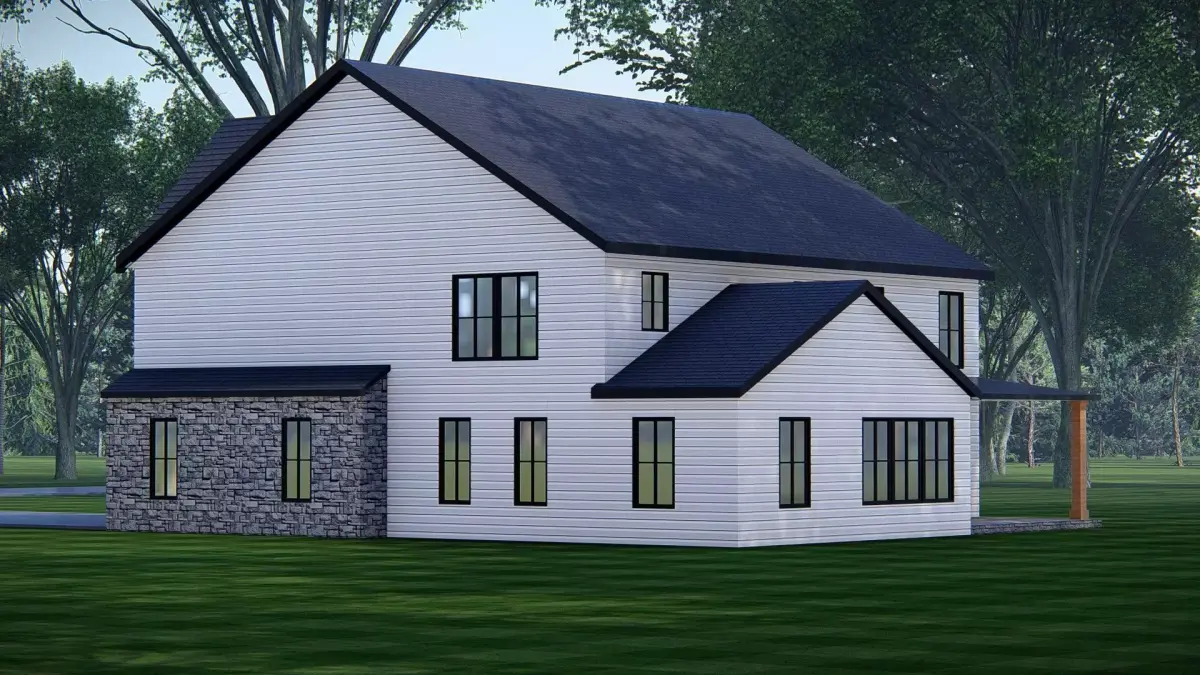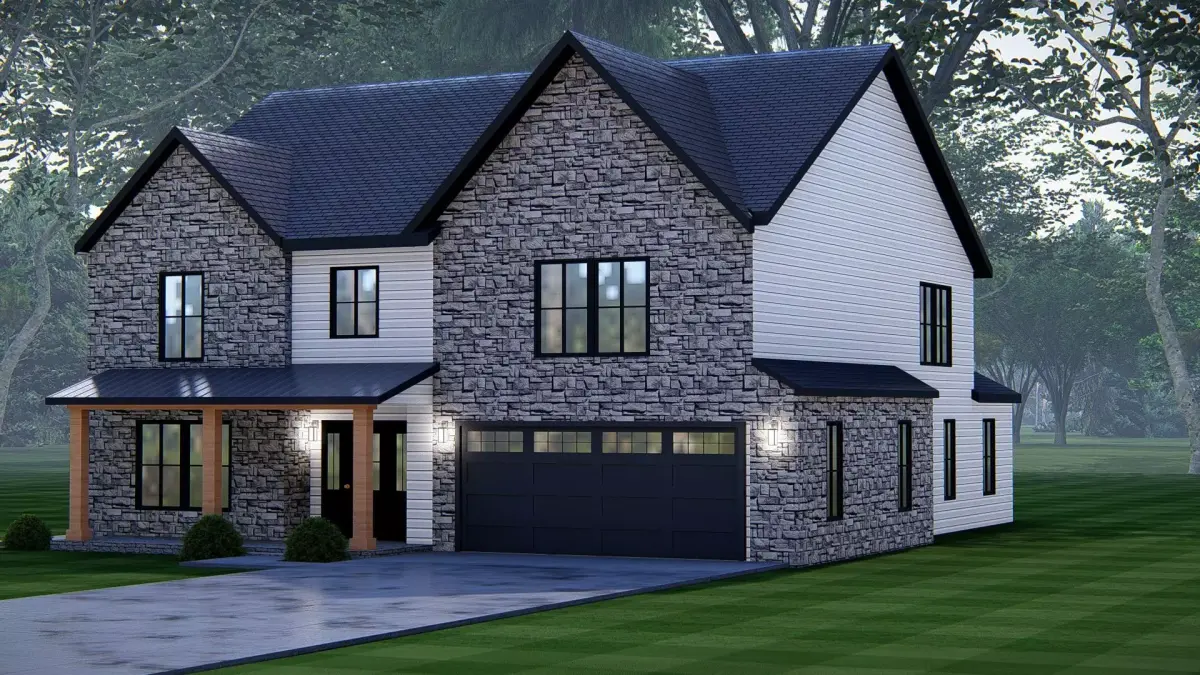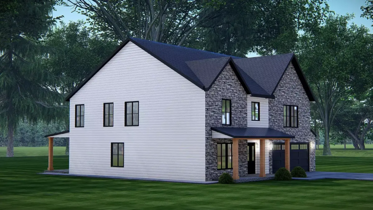 This 3D render of an American Exterior House Design showcases the timeless charm and functionality of classic American architecture. Featuring a pitched roof, wide porch, clean facade, and balanced proportions, the design captures the essence of family-friendly suburban living while blending modern comfort with traditional style.