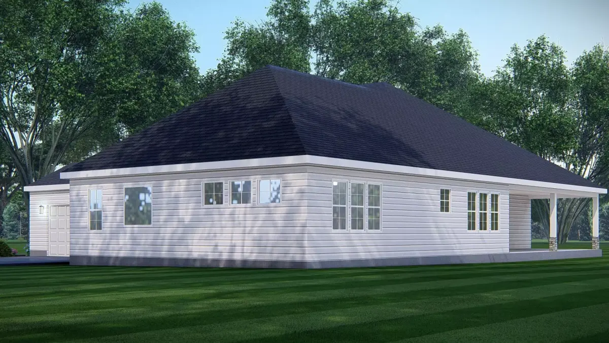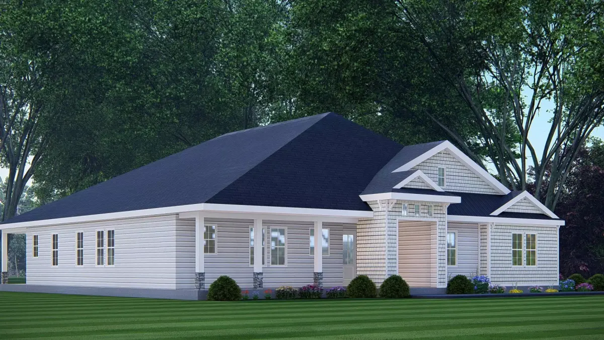 This 3D render of an American Exterior House Design showcases the timeless charm and functionality of classic American architecture. Featuring a pitched roof, wide porch, clean facade, and balanced proportions, the design captures the essence of family-friendly suburban living while blending modern comfort with traditional style.