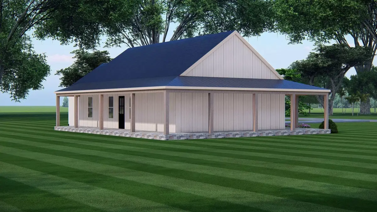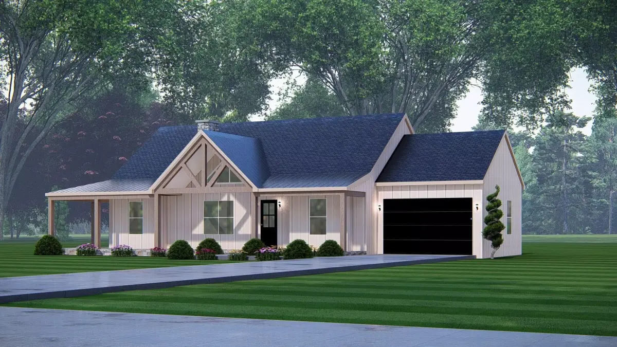 This 3D render of an American Exterior House Design showcases the timeless charm and functionality of classic American architecture. Featuring a pitched roof, wide porch, clean facade, and balanced proportions, the design captures the essence of family-friendly suburban living while blending modern comfort with traditional style.