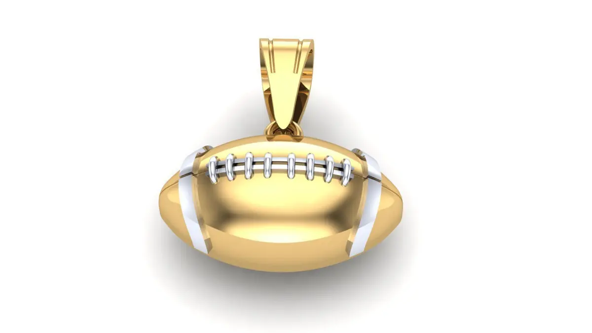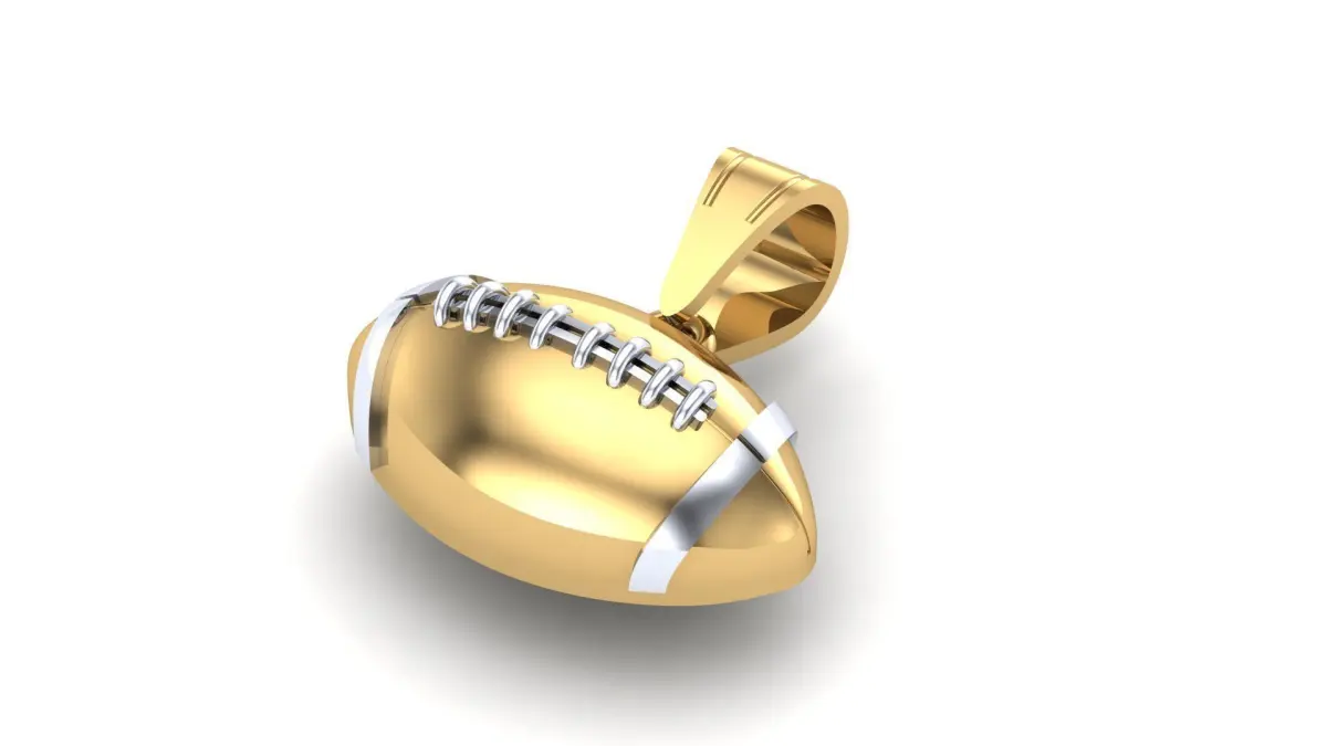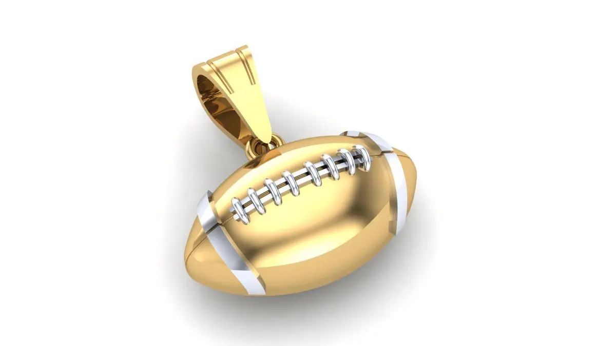 This is American football for jewellery. It is 0.75 inch wide and 0.5 inch tall hollow with solid back. Bail is for 7mm by 4 mm chain. It is perfect for casting in any metal and any modification/changes are possible