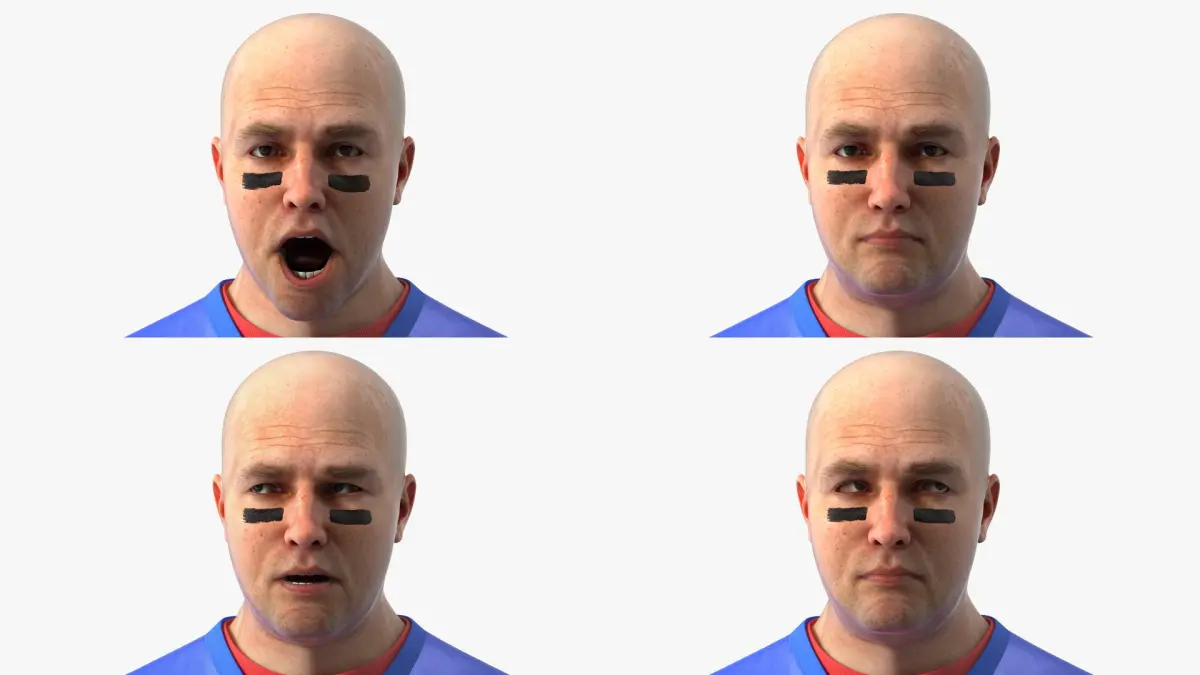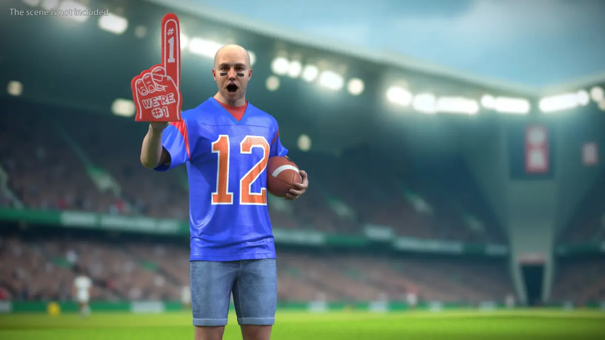 American Football Fan Wearing Blue Jersey Rigged is a high quality, photo real 3d model that will enhance detail and realism to any of your rendering projects. The model has a fully textured, detailed design that allows for close-up renders, and was originally modeled in 3ds Max 2020 and rendered with V-Ray. Renders have no postprocessing!