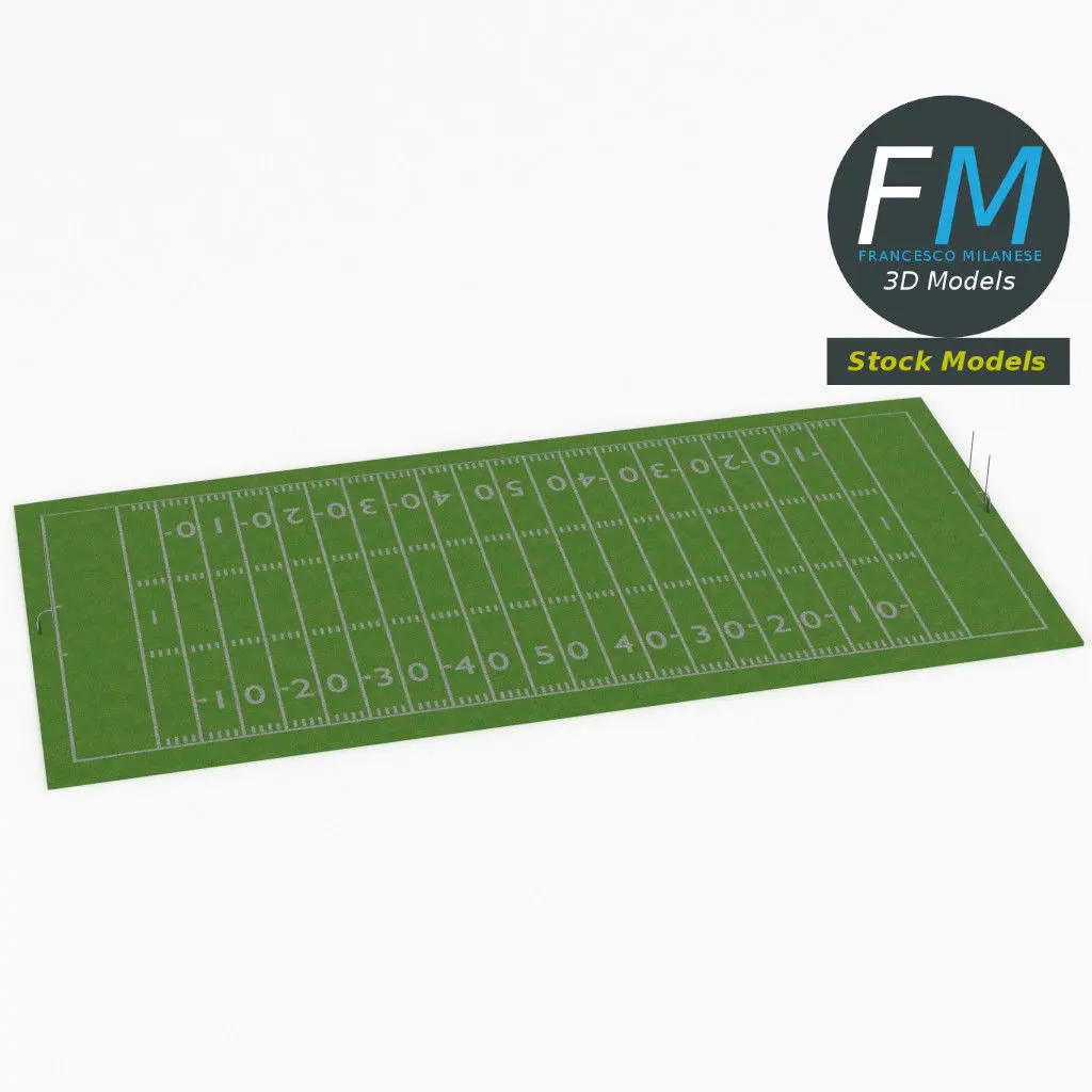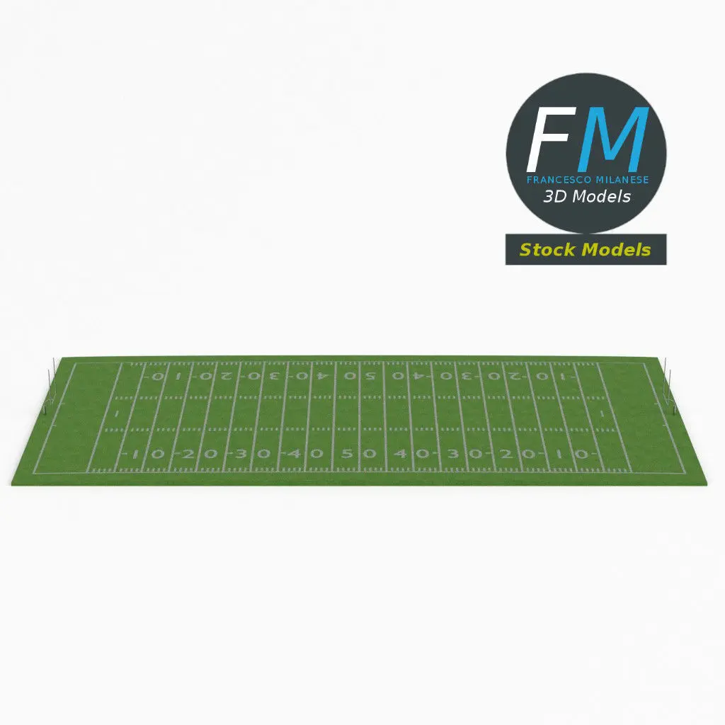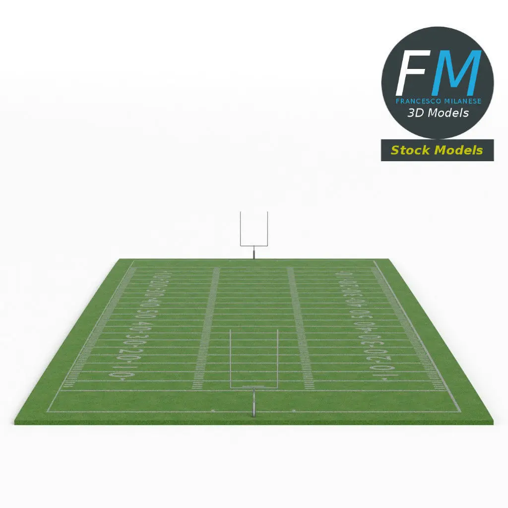 American football field 3D Model. Production-ready 3D Model, with PBR materials, textures, non overlapping UV Layout map provided in the package.