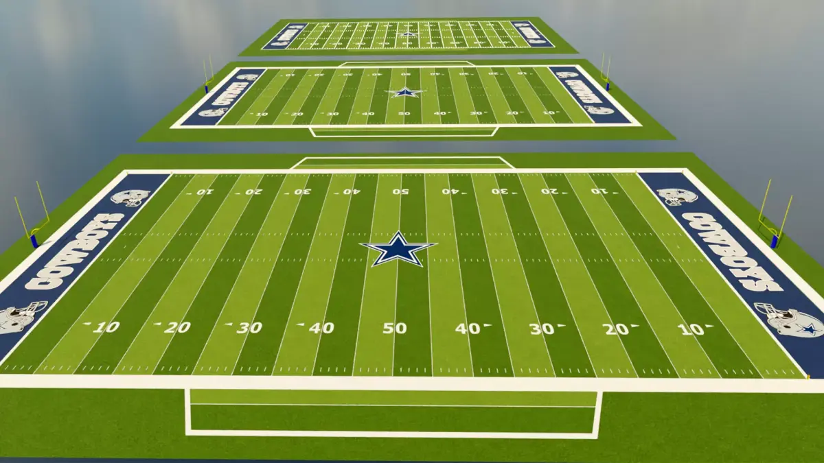 3 different field styles all to the correct scale/dimensions of the NFL