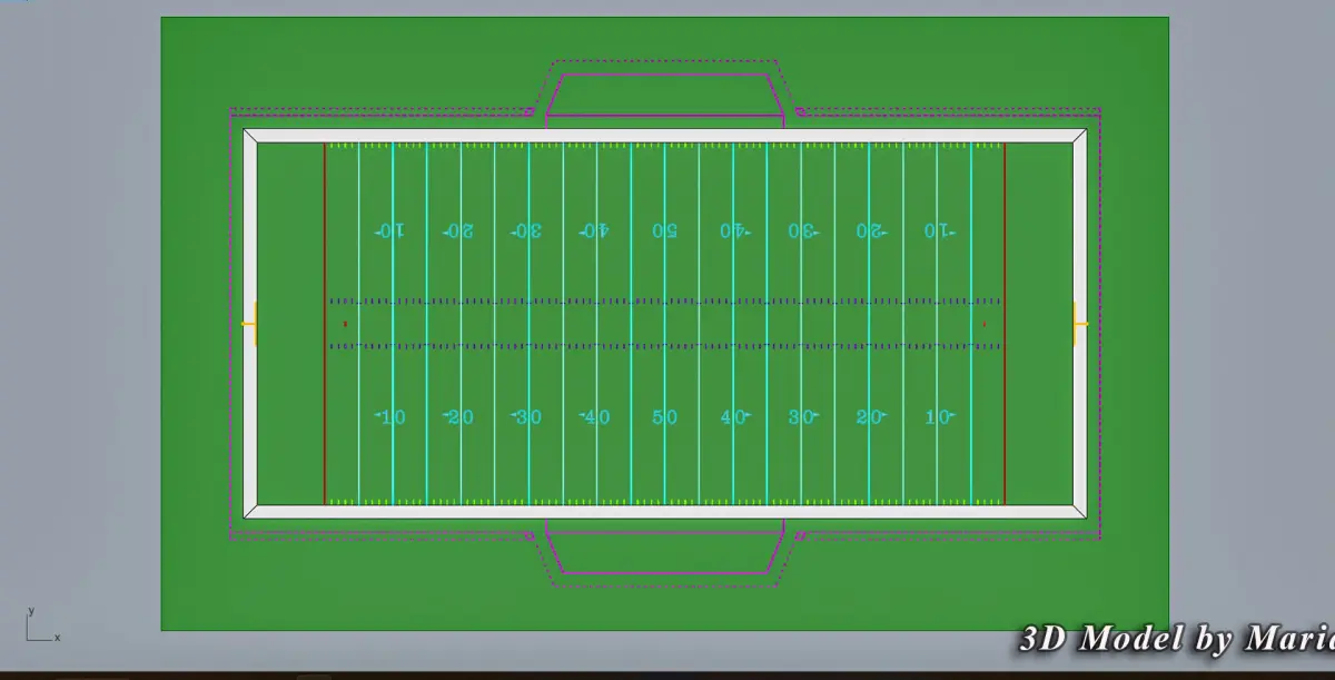 This is a realistic 3d version of american football field. All field lines, goal posts, field numbers, pylons , are accurately created by standard NFL field dimensions using CAD Methods.