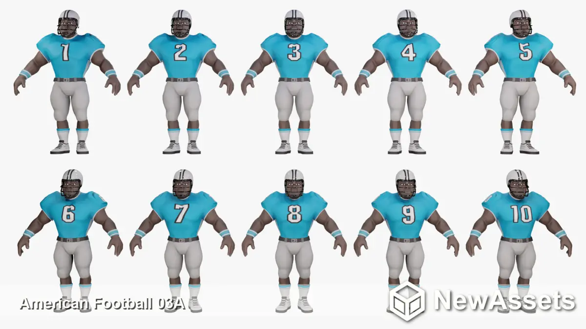 American Football Touchdown CharacterStylized American Football Character. Low polygon, suitable for pc and mobile game. Compatible with mixamo. If you want, you can rig it with mixamo and make as many animations as you want.