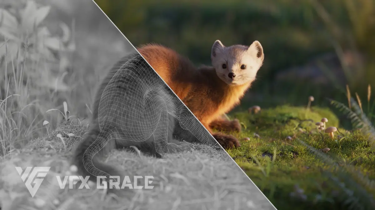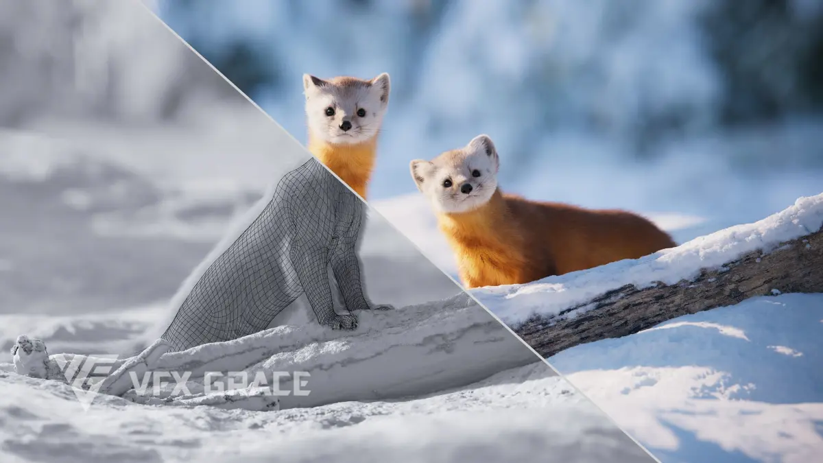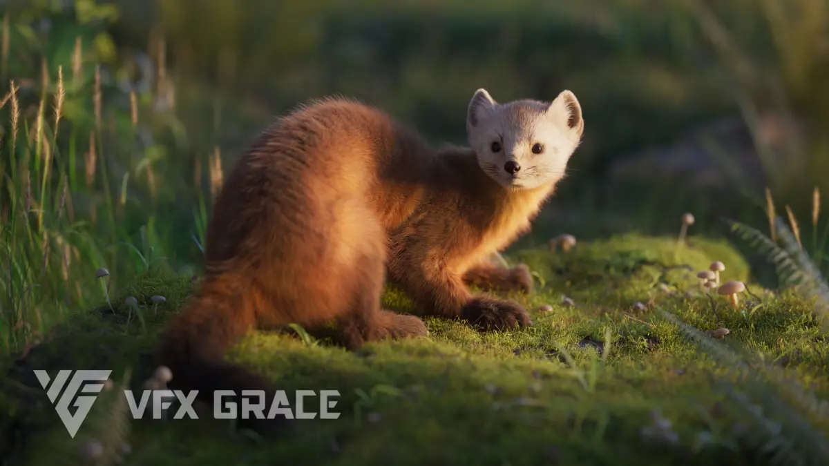 This is a high-quality Martes Americana model with textures, fur, rigging, and one animation. The body is made after real muscle structures and the fur maps and skin maps are made separately. The model is made with Blender and Cycles renderer at a real-world scale.