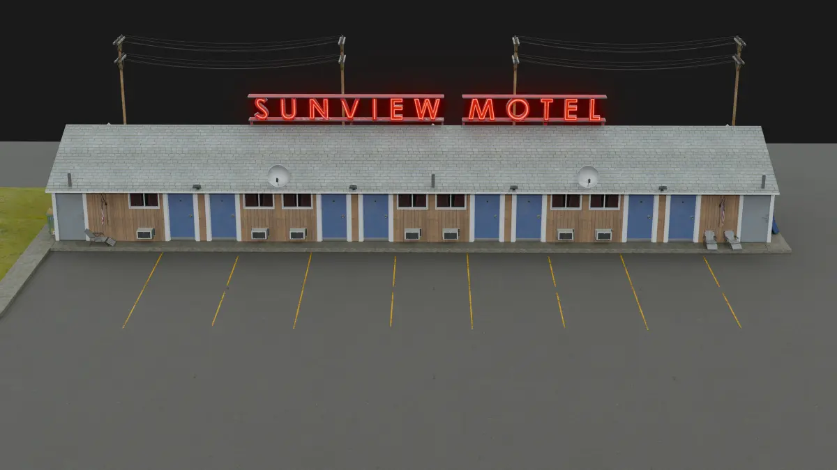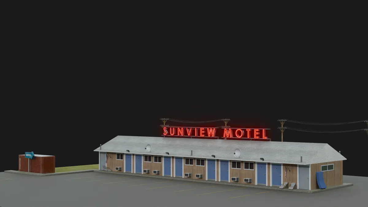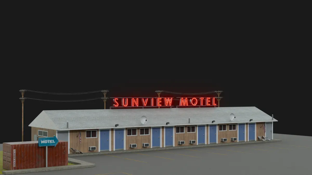 Bring a classic slice of Americana to your next project with this meticulously crafted modular 3D model of an American motel. Optimized for both game engines and high-end production, this asset offers unparalleled flexibility and visual fidelity.Modular Design: Create endless motel configurations with interchangeable walls, roofs, doors, windows, and other architectural elements.