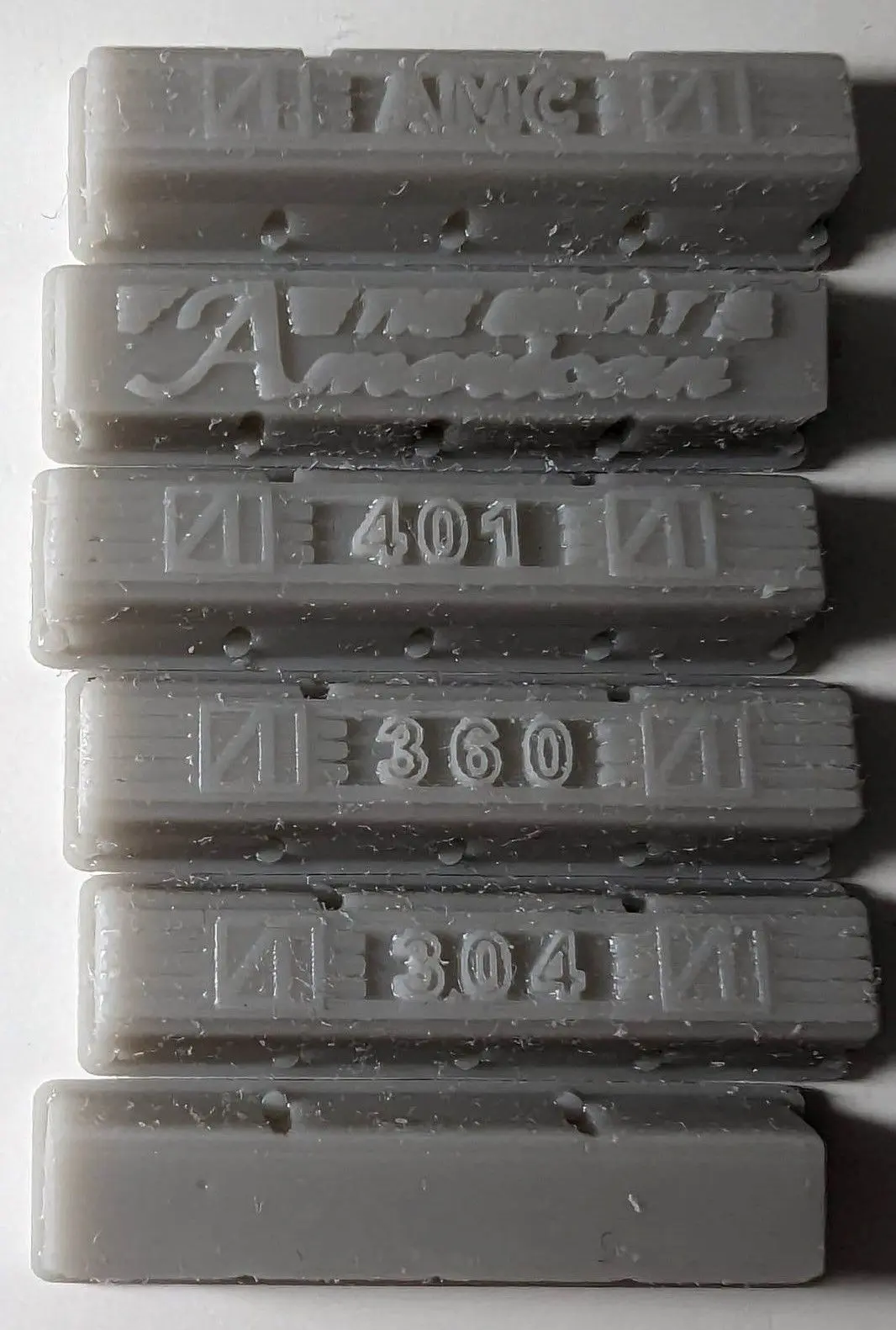 American Motors Corporation (AMC) engine, 304, 360, 390 or 401 block (they use the same block but the heads and internals are different in 1:1 scale) Options include various manifolds, stock, blower, tunnel ram etc. Different valve covers and blocks with their designated displacement number like the real thing. Included a 1 piece motor to make it easier with gluing the major pieces. To convert it to 1/24th scale use this multiplier 104.1667%. Added new photos with the 68 Javelin front clip, chassis and rear end. Add-ons are used on Andrey's Bezrodny AMC 3d-files that he offers. White car body is the AMC Hurst Scrambler