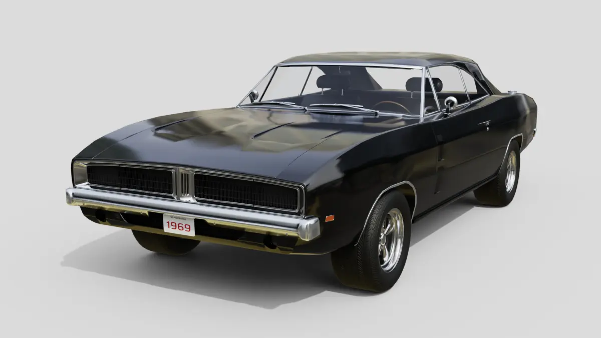 High-quality, realistic 3D model of a classic 1960s muscle car.