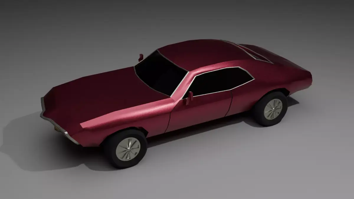 Technically, the model is a masterclass in efficiency and professional 3D workflow. Built with a remarkably lean footprint of 4,396 vertices and 4,171 polygons, it is perfectly optimized for real-time applications like video games or mobile simulations without sacrificing visual impact. The topology is exceptionally clean, ensuring smooth deformation and easy further modification. Beyond its geometry, the model has been fully UV unwrapped, allowing for precise texture placement. The materials, crafted entirely within Blender, utilize a realistic PBR (Physically Based Rendering) approach; the bodywork exhibits a subtle metallic flake and high-quality light catchers, while the wheels and undercarriage feature a matte finish that provides a grounded, balanced contrast. This combination of old-school low-poly art and high-end material science makes it a versatile asset for any digital environment.