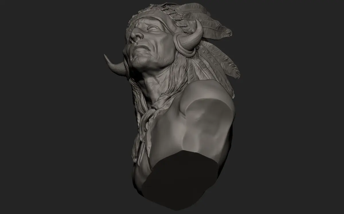 American native warrior. Zbrush Model. Must be resized. Best results with resin printers. Some screen shots are without eyes, because was taken during the creation process