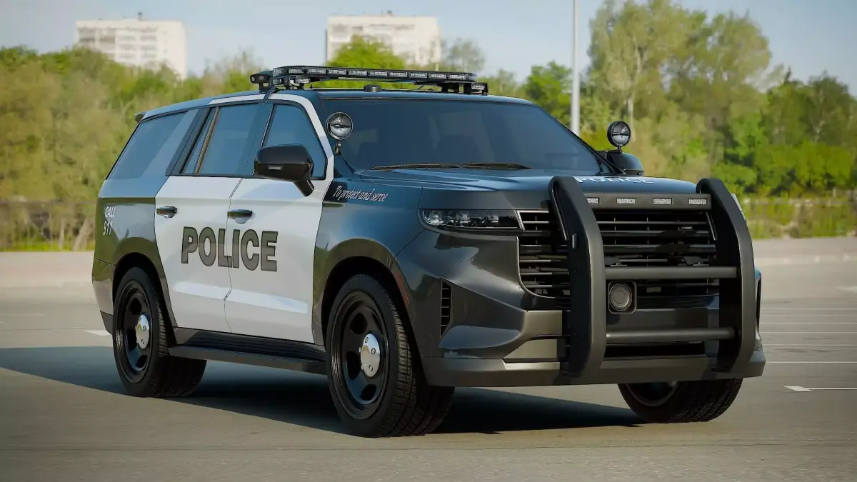 This is a 3D model of a police SUV car inspired by the police SUV cars often used in America.