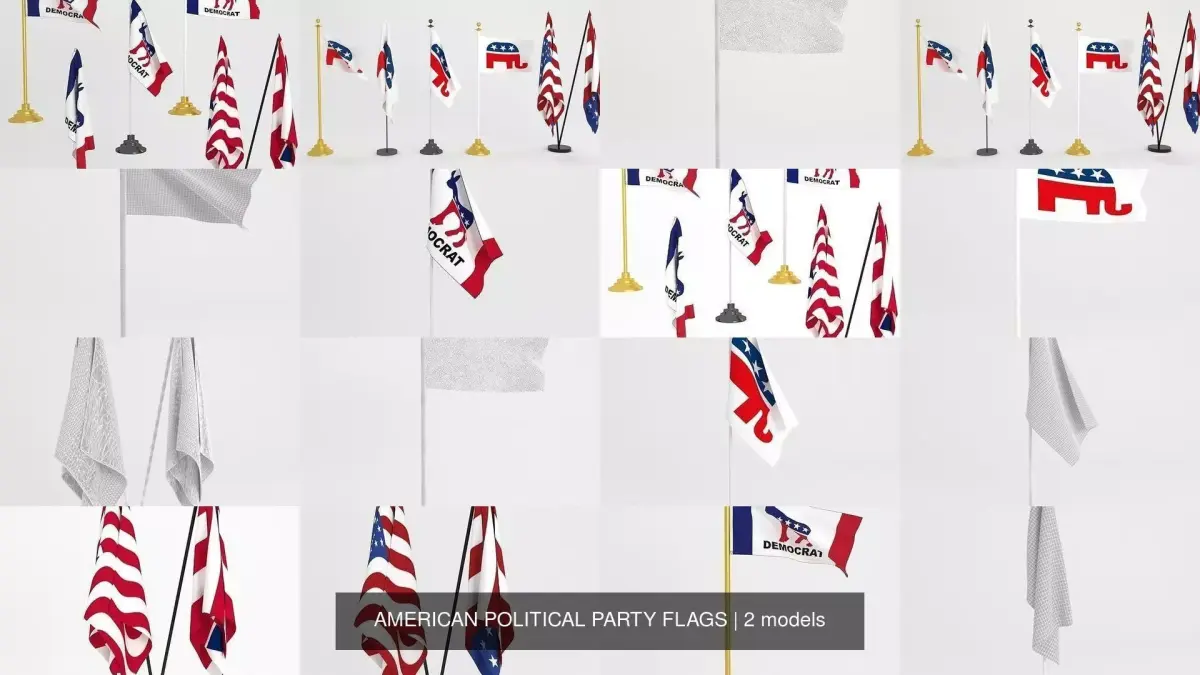 --General--democratic party flag 3d model ready to animate.