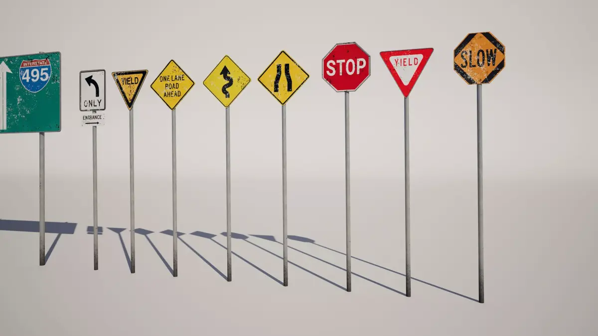 Detailed model pack of american road/traffic signs