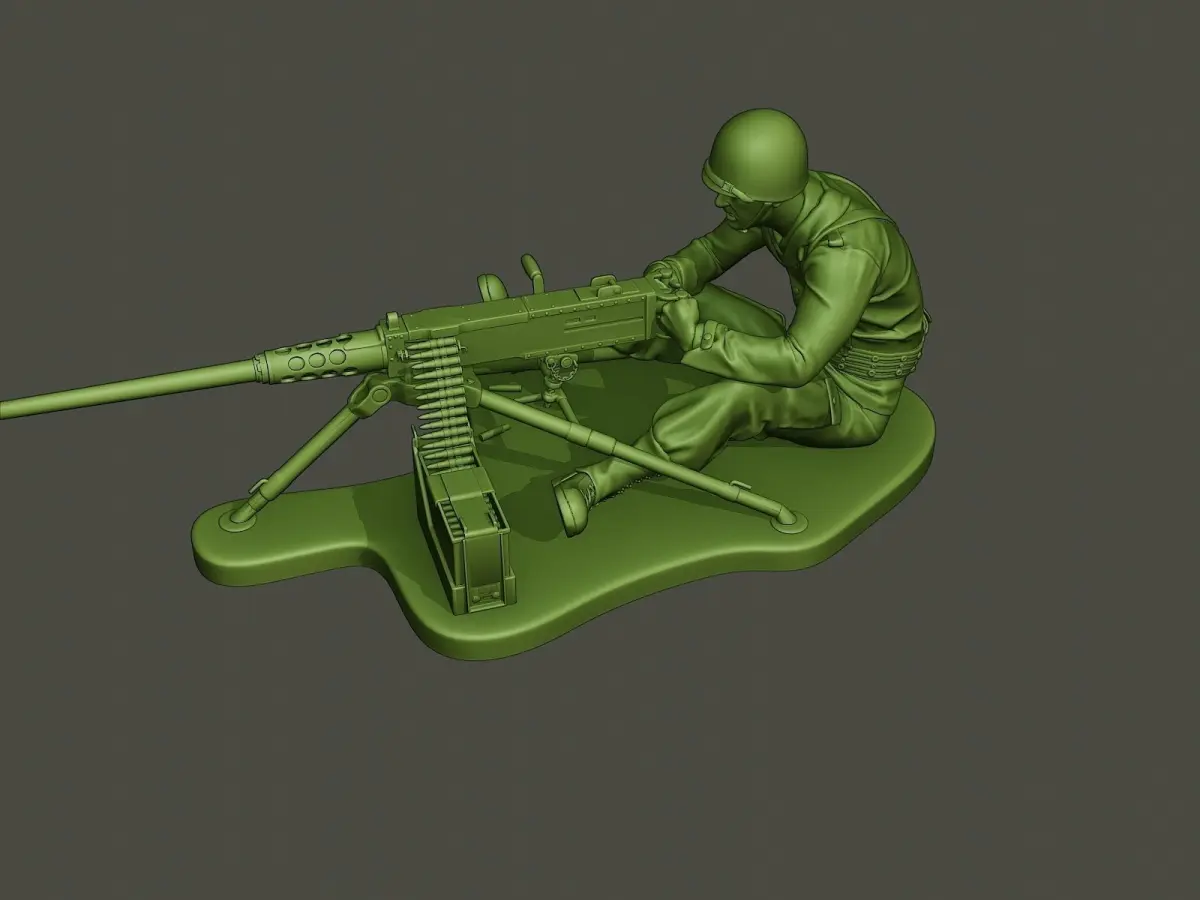 American soldier model with Browning M2, clothes and more. Model in action pose.