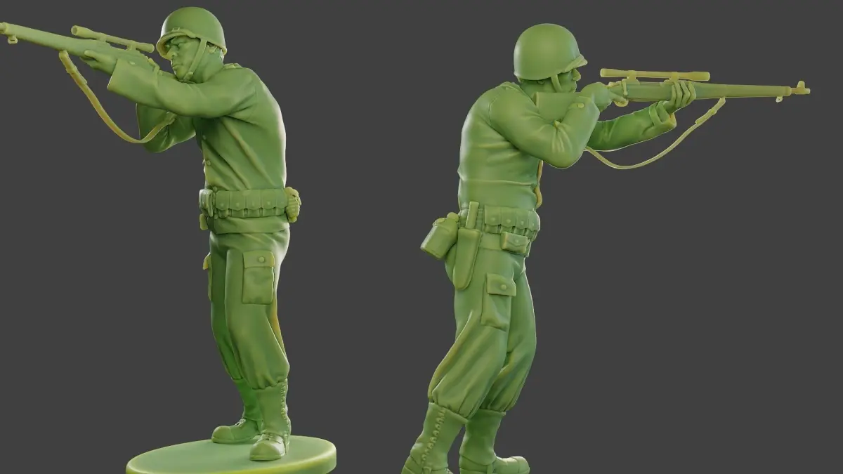 - American soldier model with guns (M1 Garand) and objects. (3d print model).
