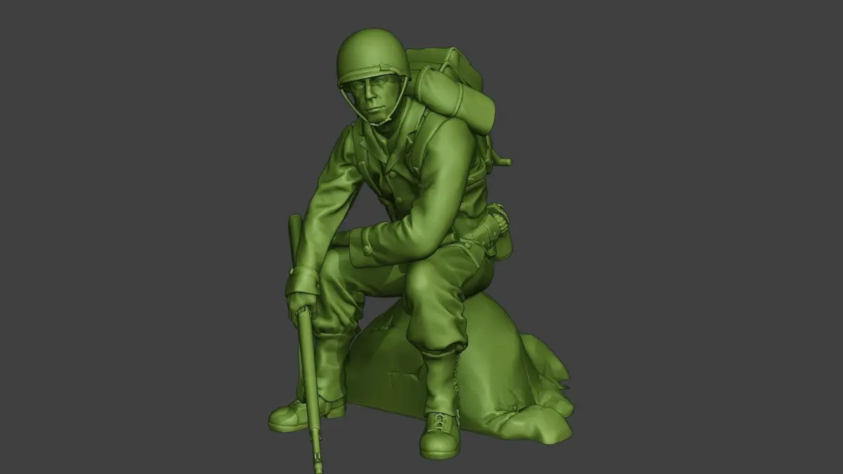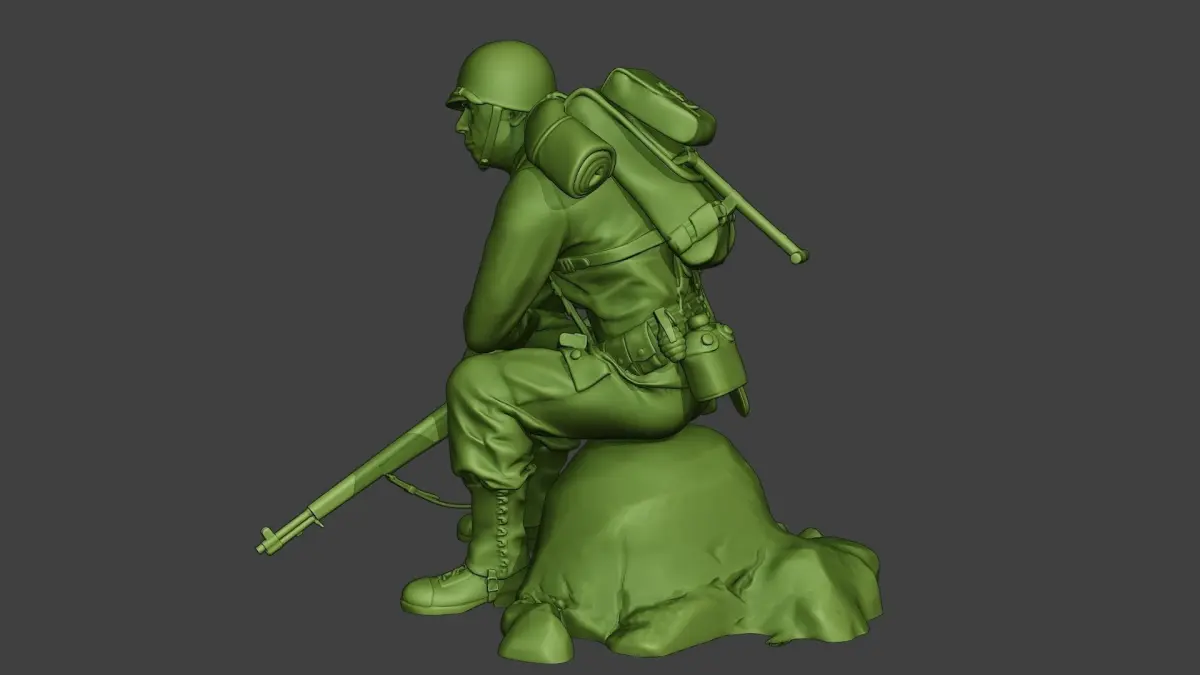 - American soldier model with guns (M1 Garand) and objects (3d print model).