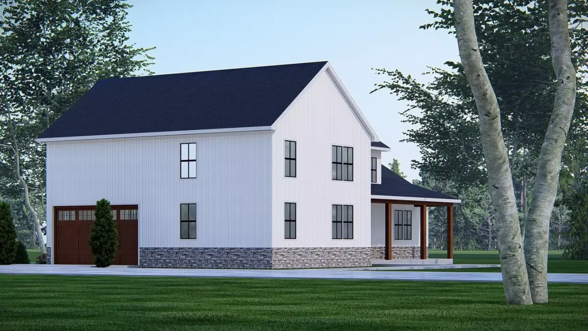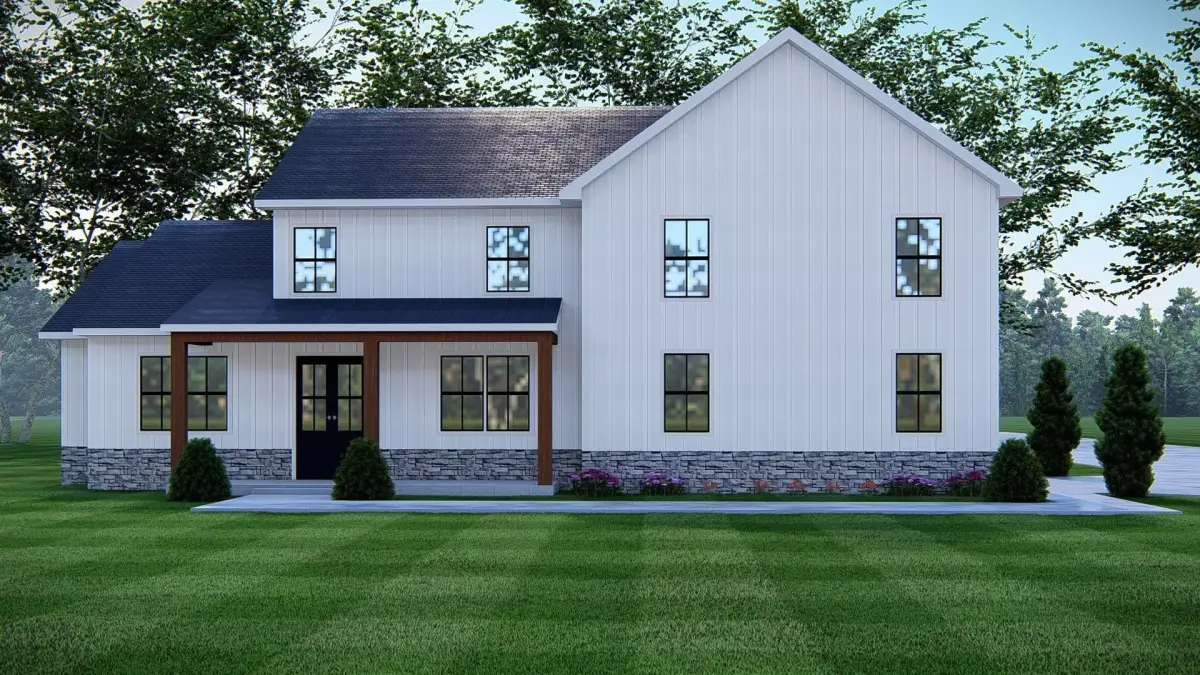 The exterior design features wide porches, rustic wooden textures, pitched roofing, barn-inspired elements, and open layouts that embody the warmth and lifestyle of traditional American homesteads. This versatile house style reflects the perfect balance of rustic charm and modern practicality, making it ideal for both countryside retreats and suburban living concepts.