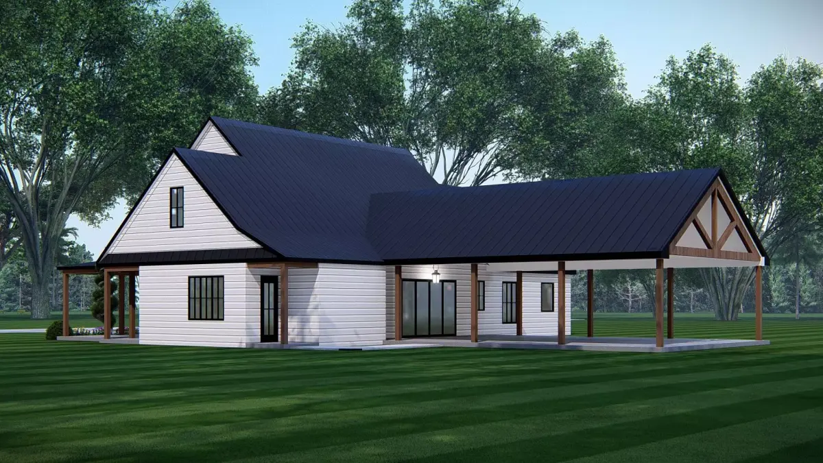 This American Wooden Ranch Farmhouse Barndominium 3D Model is a detailed and realistic representation of a classic country home that blends the charm of farmhouse living, the simplicity of ranch design, the durability of wooden structures, and the spacious appeal of barndominiums.