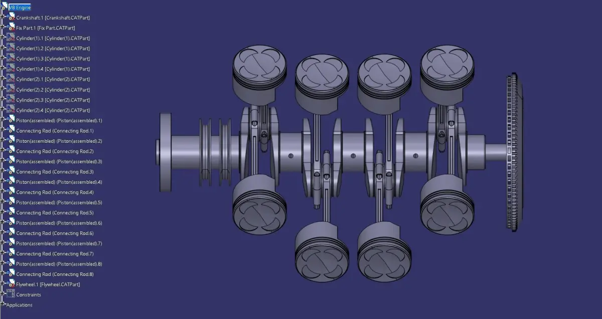 This V8 Engine is Designed and Simulated in CATIA V5. All Dimensions are real and close to Mercedes Benz AMG Series.The original CAT PART and CAT PRODUCT files are available and also you can download STEP and CGRFiles. The model is rendered in KEYSHOT 5.The model is correctly assembled and you can simulate the mechanism in CATIA DMU Kinematics and it is very helpful for learning CATIA constraints and also according to real dimensions , It is good for 3D Printing.You can watch the animated video of this model in the link below on youtube :