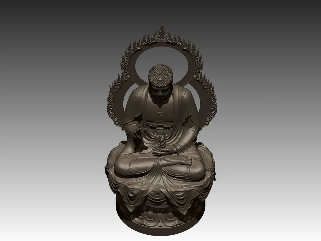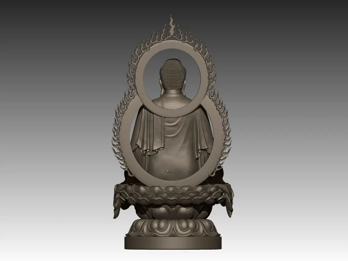 This is a highly detailed 3D model of Amitabha Buddha, the Buddha of Infinite Light. The statue features the Buddha seated in meditation on a lotus base, holding a small pagoda symbolizing enlightenment and boundless compassion.