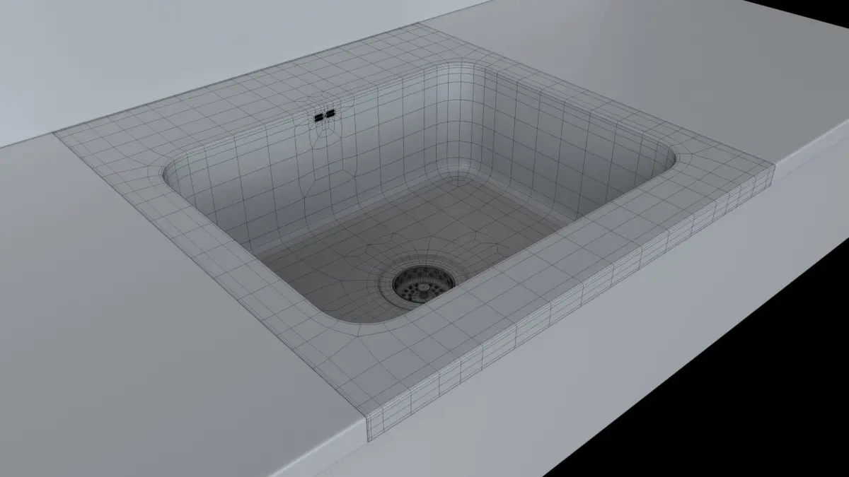 Detailed subdivision model of an ikea AMMERÅN sink with a LILLVIKENsink stopper for architectural visualization.
