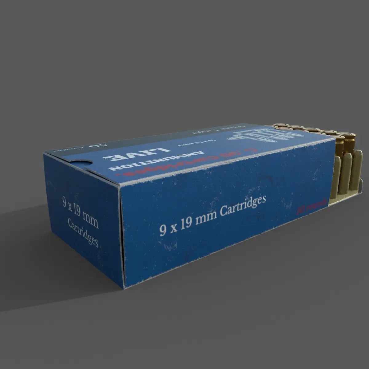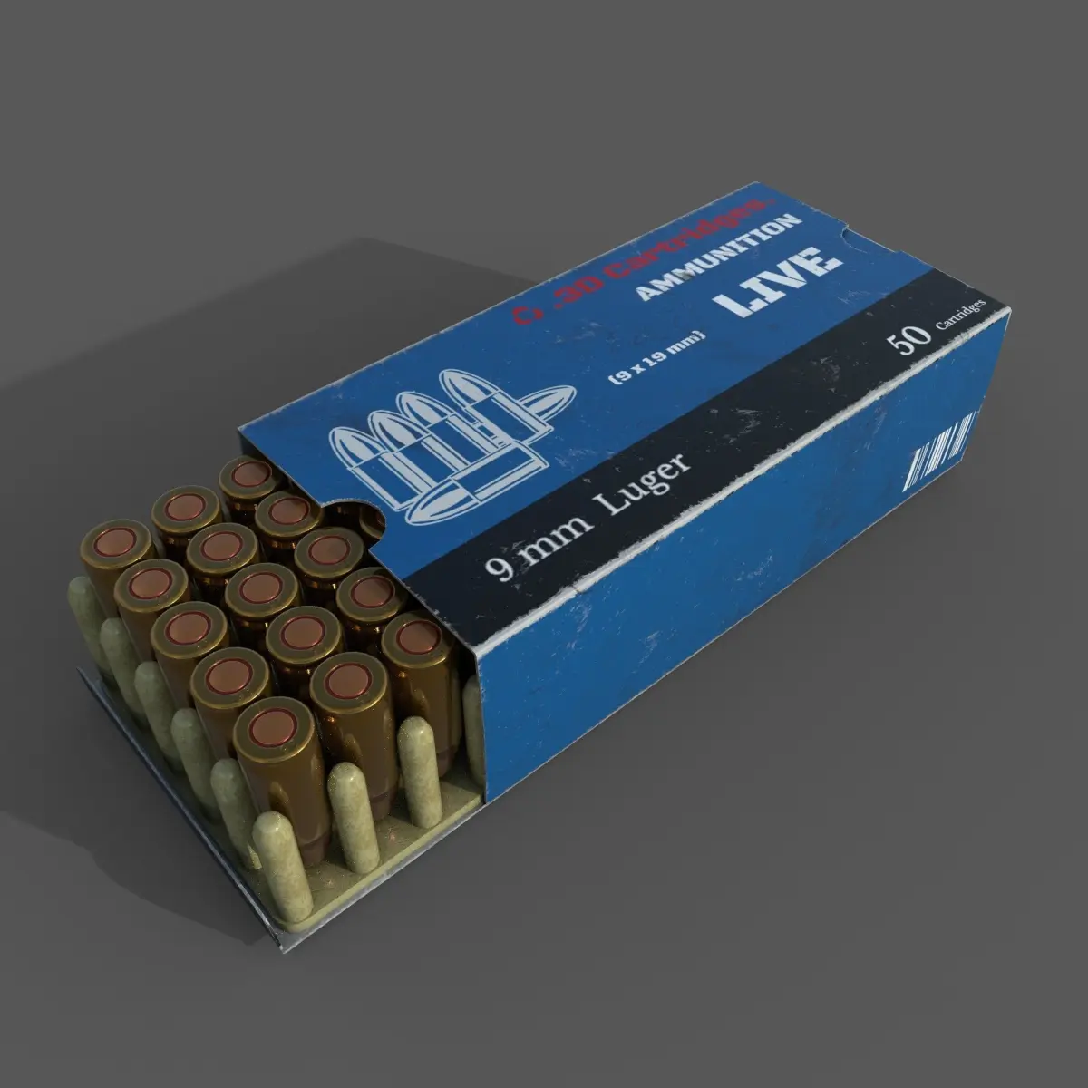 In the archive Textures you can find the next maps: BaseColor, Metallic, Roughness, Height and AO (for Box, Stand and Cartridges).