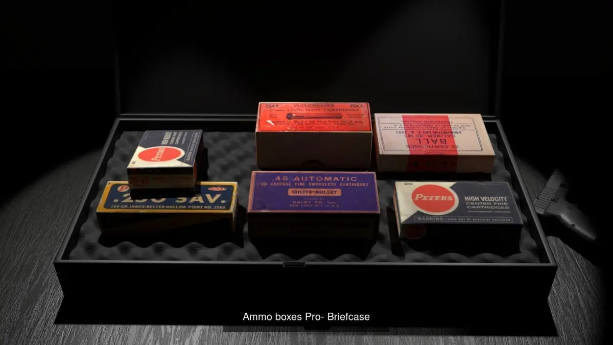 Mesh: 5 ammo box: - .45 - .30 - 30-40 - .250 - shotgun Ammo