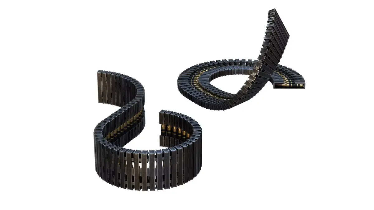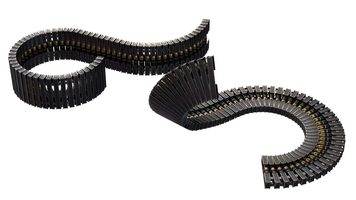 The 3D model is one link of a metal sleeve and a cartridge [Main file]. The possibility of using is shown in the attached file - a system of dependent bones is used - it is possible to build at your discretion.