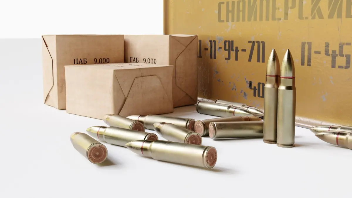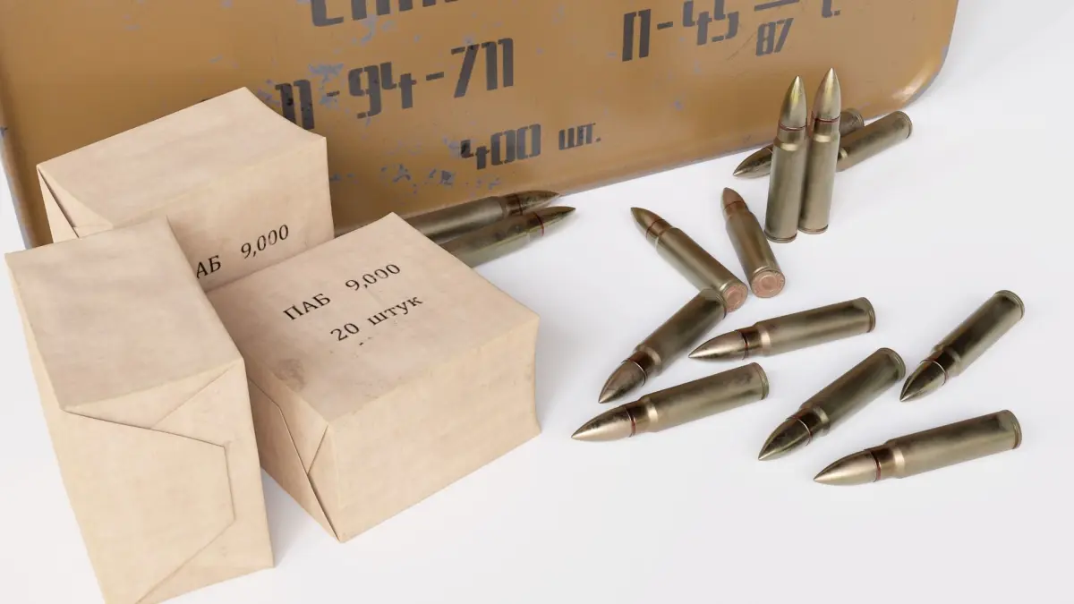 Russian Vintirez rifle's ammo pack. Includes shipping army box, cardboard package, 9*39 bullets (SP-5 bullet). Ready for use.