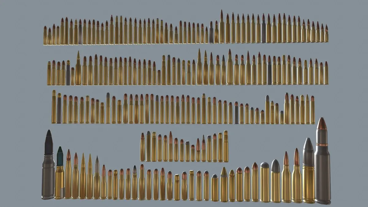 Ammo pack modeled in Blender 3D. All individual pieces of bullets are UV unwrapped and assigned material. All the bullets are lowpoly, making it suitable for use in games. 216 different bullets.