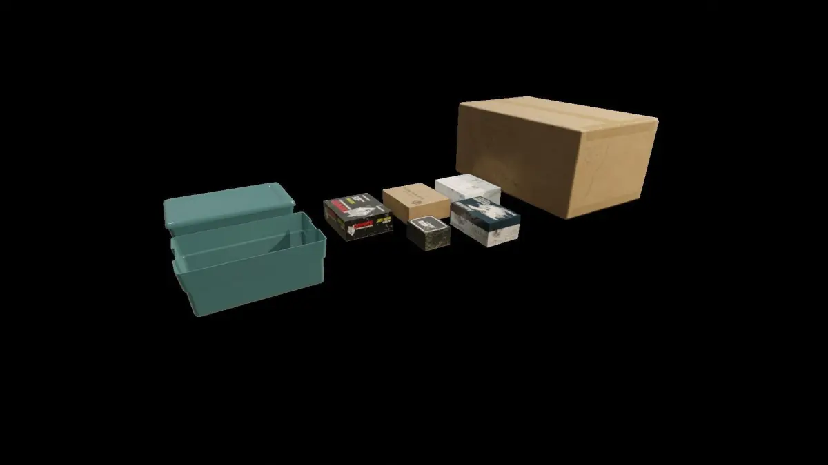 Ammunition reloading bench with any required tools and supplies. Most props are static but the scale, press, tumbler, and caliper have simple rigs to make animation easier. There are three materials atlas packed:ReloadingBench - 1 object 5.03TD @ 2kReloadingTools - 24 objects 11.41TD @ 2kRealoadingPressBoxes - 9 objects 13.07TD @ 2k