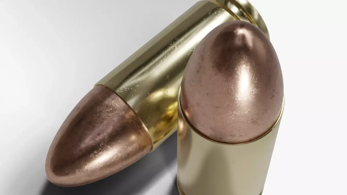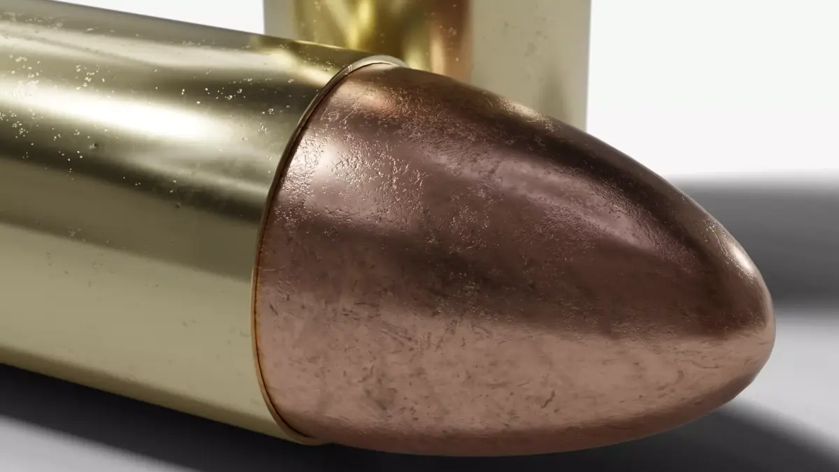 9mm Luger BulletA typical 9mm Luger cartridge with a brass casing.The cartridge comes with three different texture maps featuring varying degrees of wear and tear, making it ideal for creating renderings of entire piles of cartridges without any repetitive texture patterns.