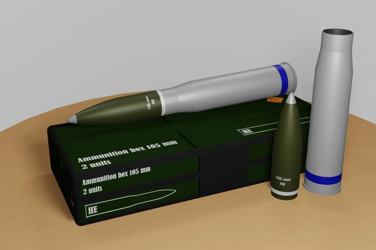 105mm HE type ammunition, available for use in different projects in videos, animations, video games.